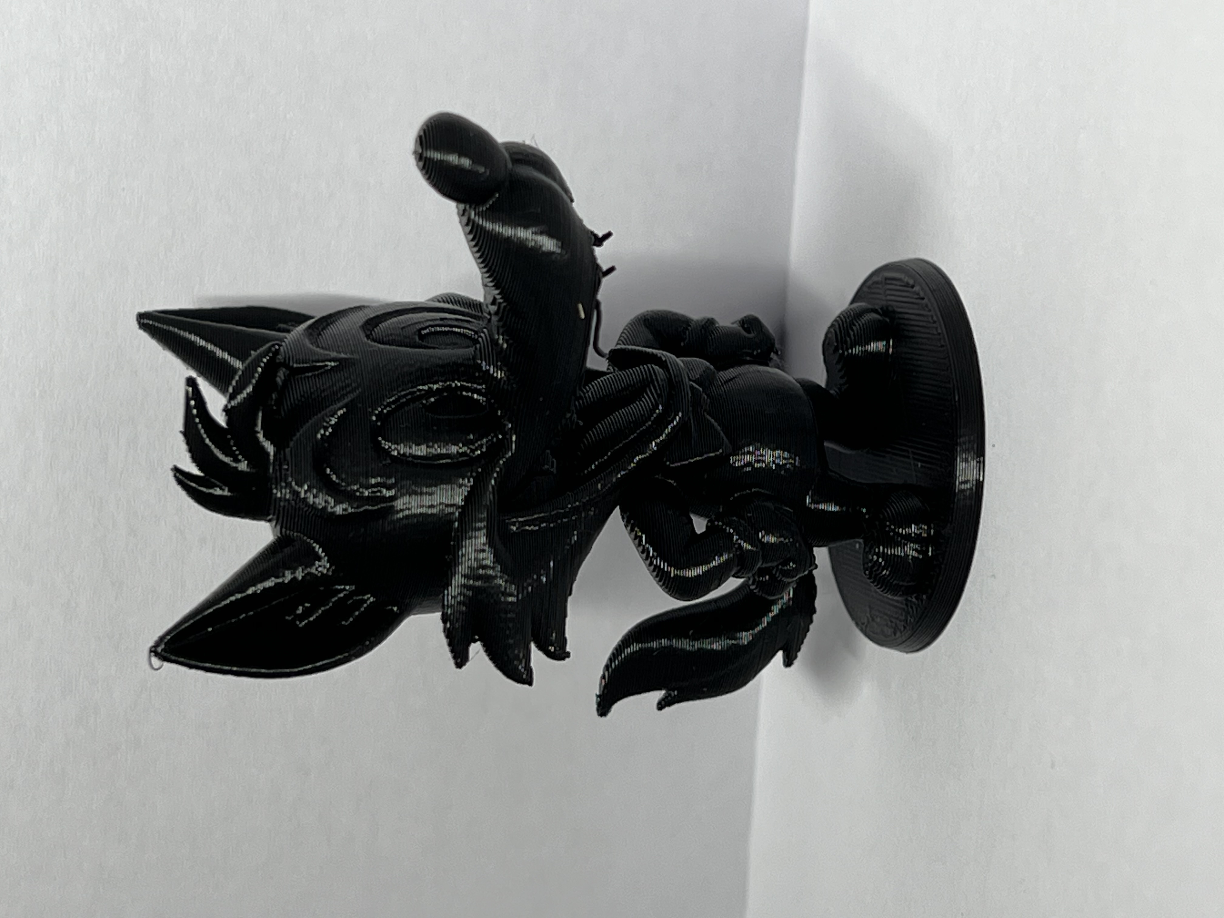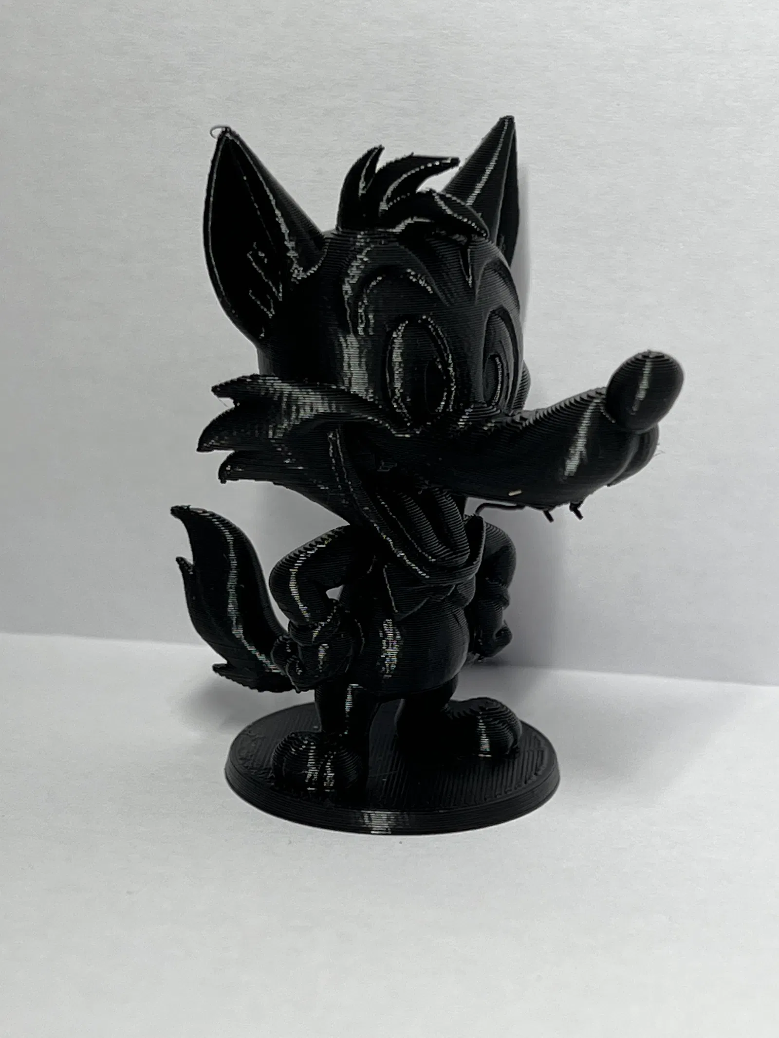 Mô hình tượng 3D Chibi Tex Avery Wolf do AI tạo. Tác giả in trên máy in hơi cũ và tối ưu tỉ lệ chất lượng/thời gian. Hình chụp macro chỉ để minh hoạ, mẫu vẫn in được ngon lành.