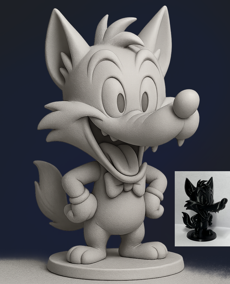 Một mô hình tượng 3D mới được AI tạo ra: Chibi Tex Avery Wolf.