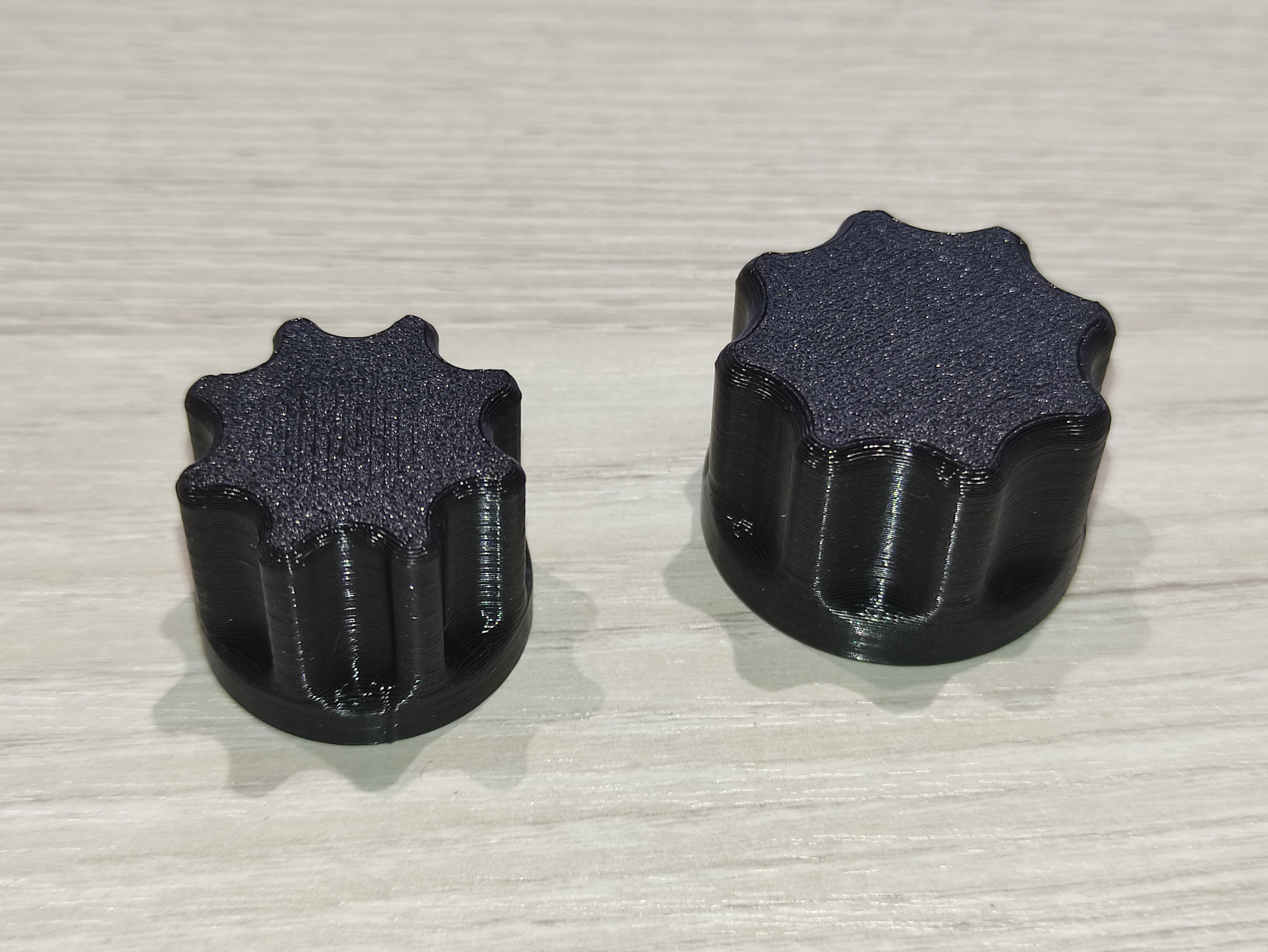 Bộ 2 núm vặn cho biến trở nhiều vòng kiểu 3590, phù hợp trục 6.3mm. Gồm 2 kích thước: Ø25mm cao 20mm và Ø30mm cao 20mm, thiết kế không có cơ chế cố định trục.