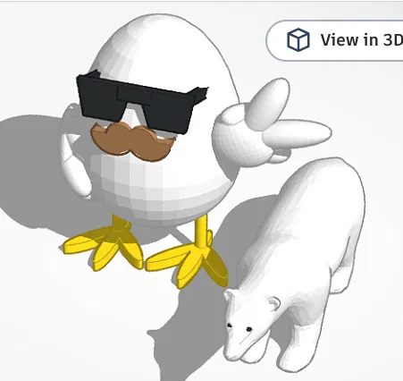 Mẫu 3D “Just a chicken dude with a polar bear, Idk” được làm ngẫu hứng khi đang chán: một anh chàng gà đi chung với một con gấu Bắc Cực. Nội dung đơn giản, đúng kiểu làm cho vui.