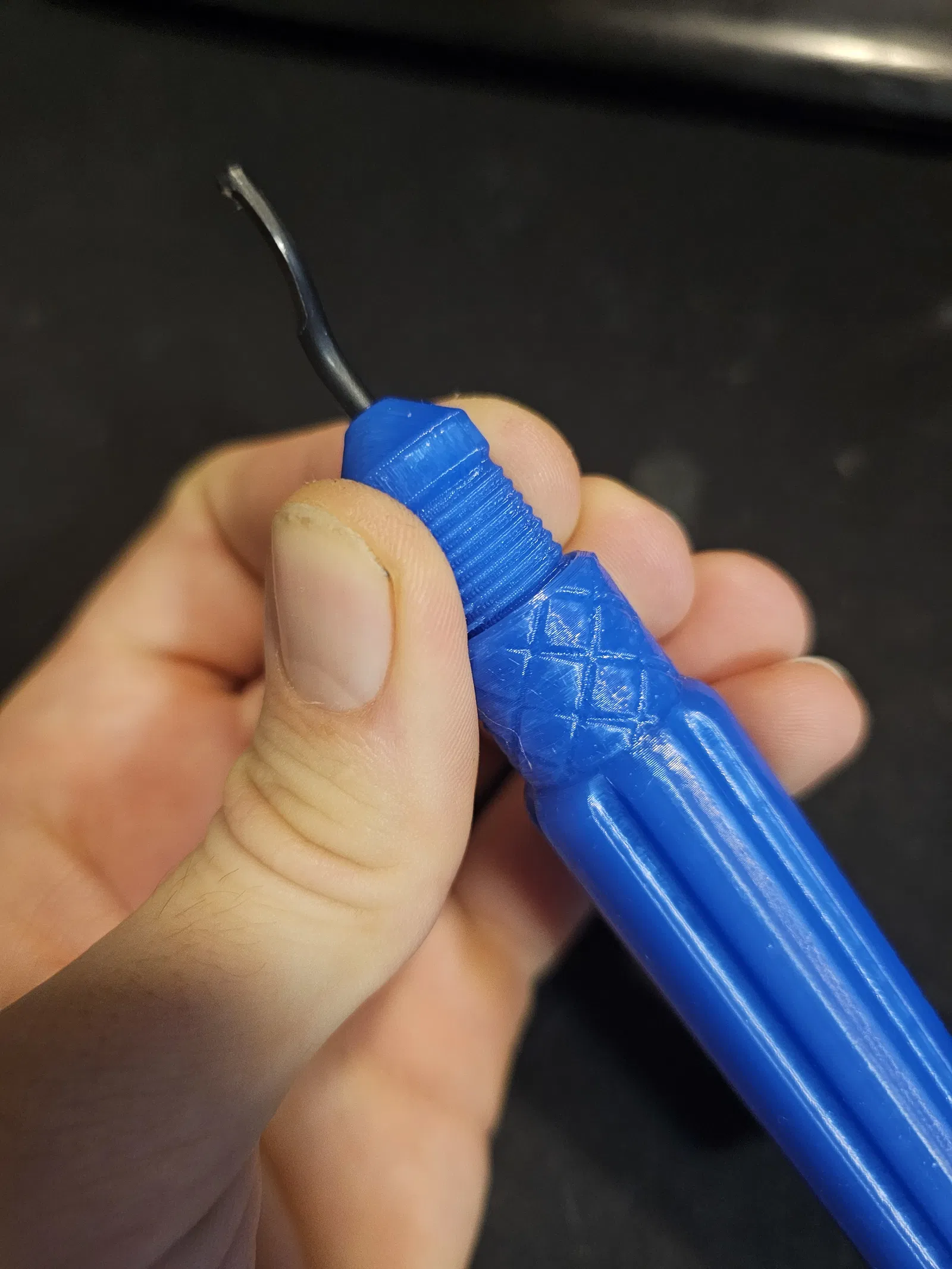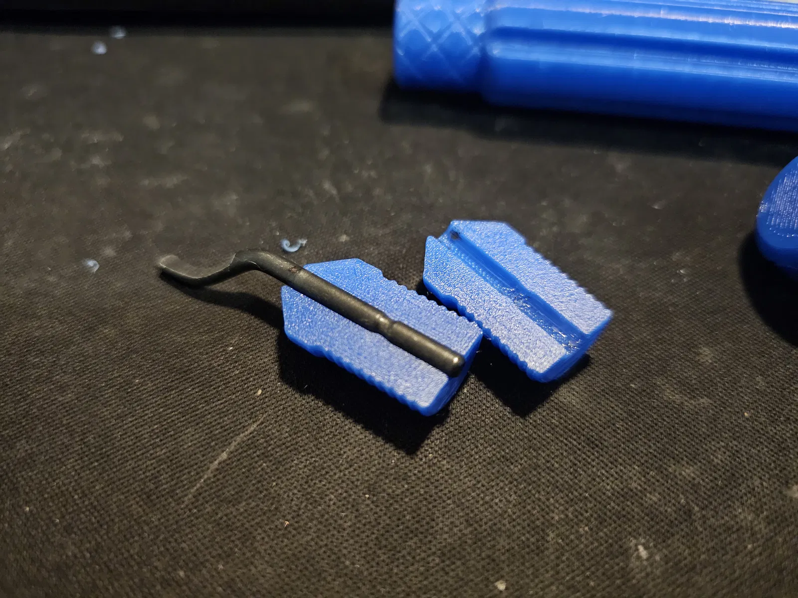 Mẫu dụng cụ deburring dễ in, có thiết kế chừa không gian bên trong để cất/giấu lưỡi dao dự phòng. Thiết lập in gợi ý: layer 0,15mm, 3 walls, 20% infill và không cần supports.