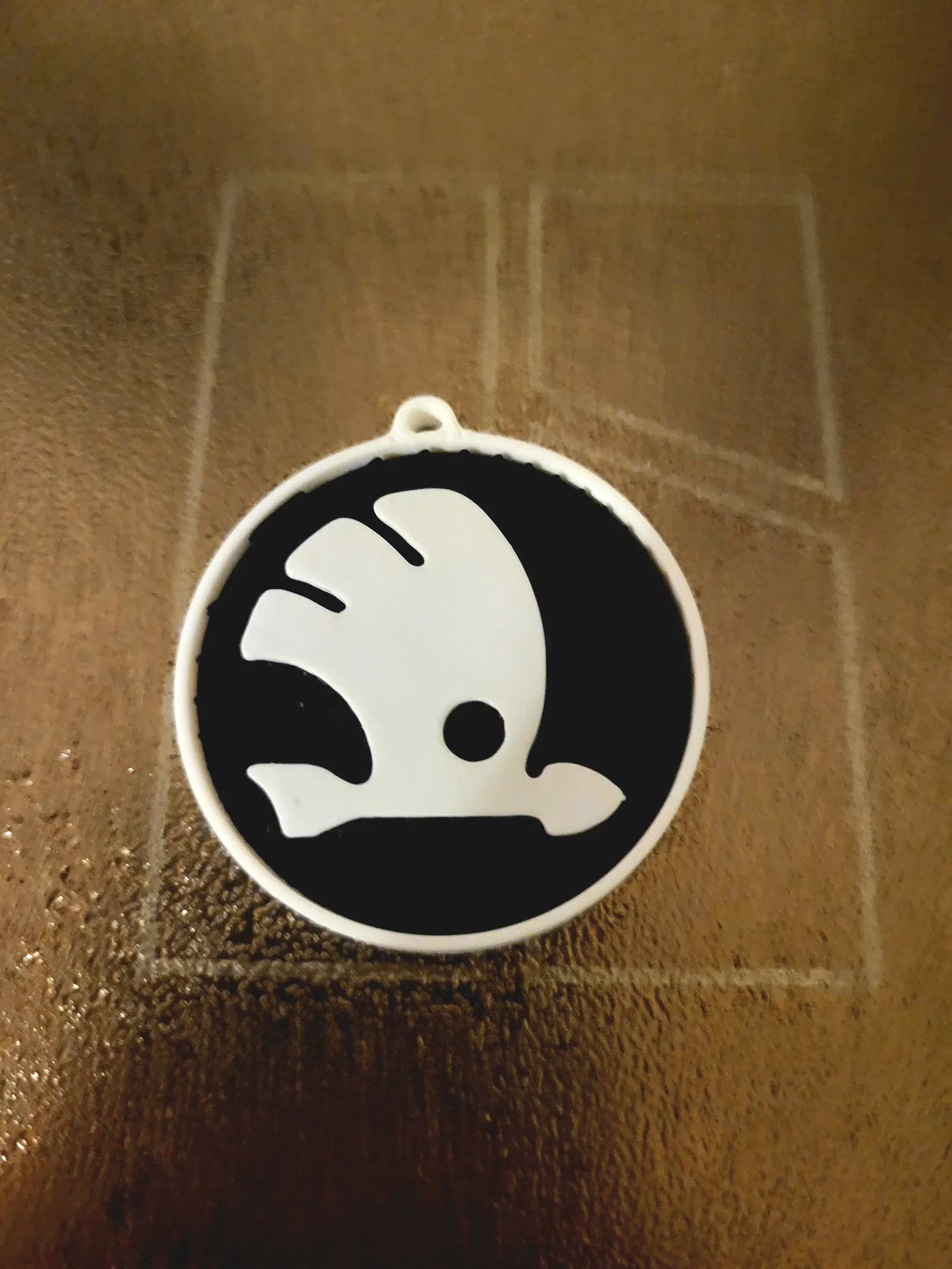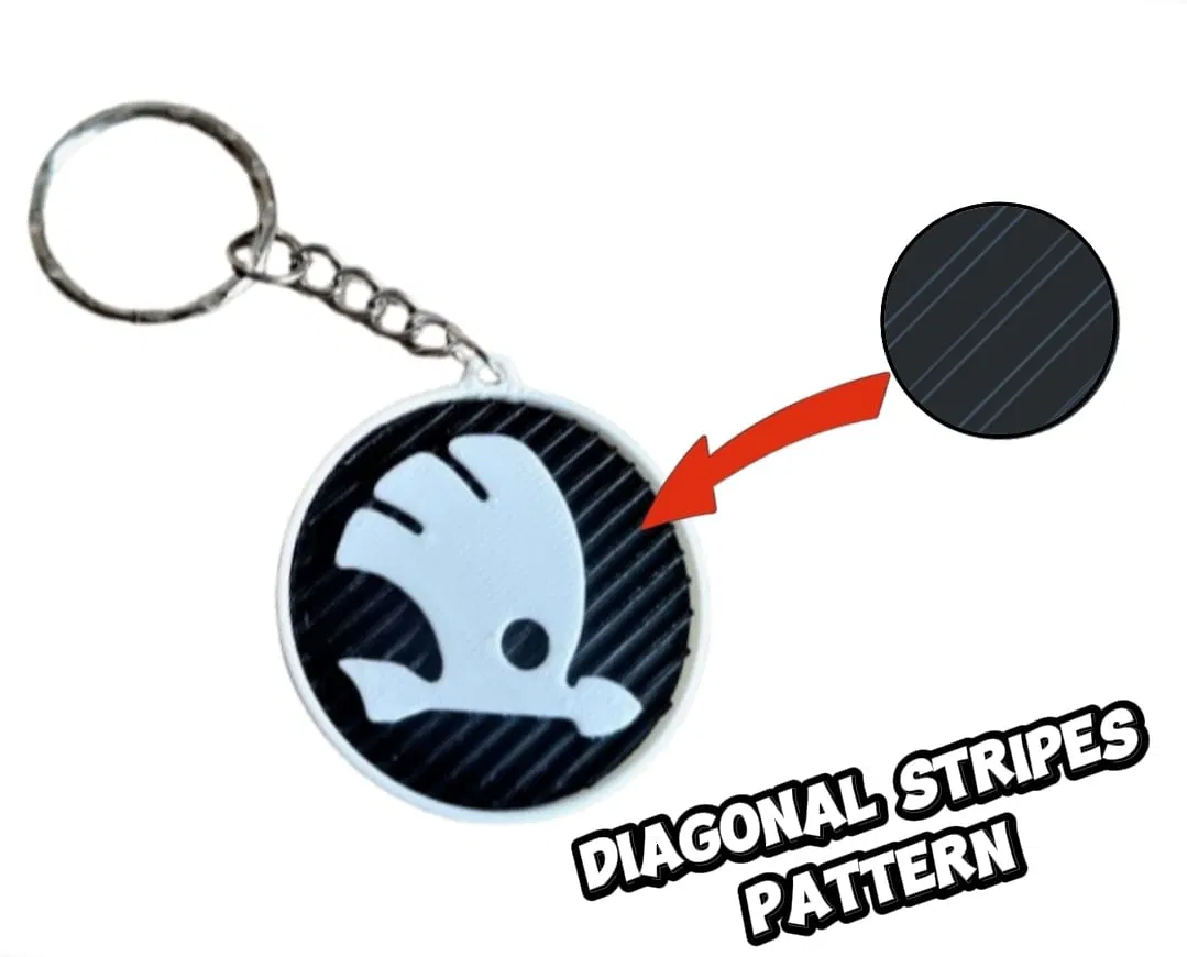 Móc khóa Škoda với hoạ tiết sọc chéo nổi bật. File được tách 2 phần để tiết kiệm filament khi đổi màu. Khi in STL, nhớ đổi filament từ đen sang trắng ở layer 12 để logo lên đúng màu.