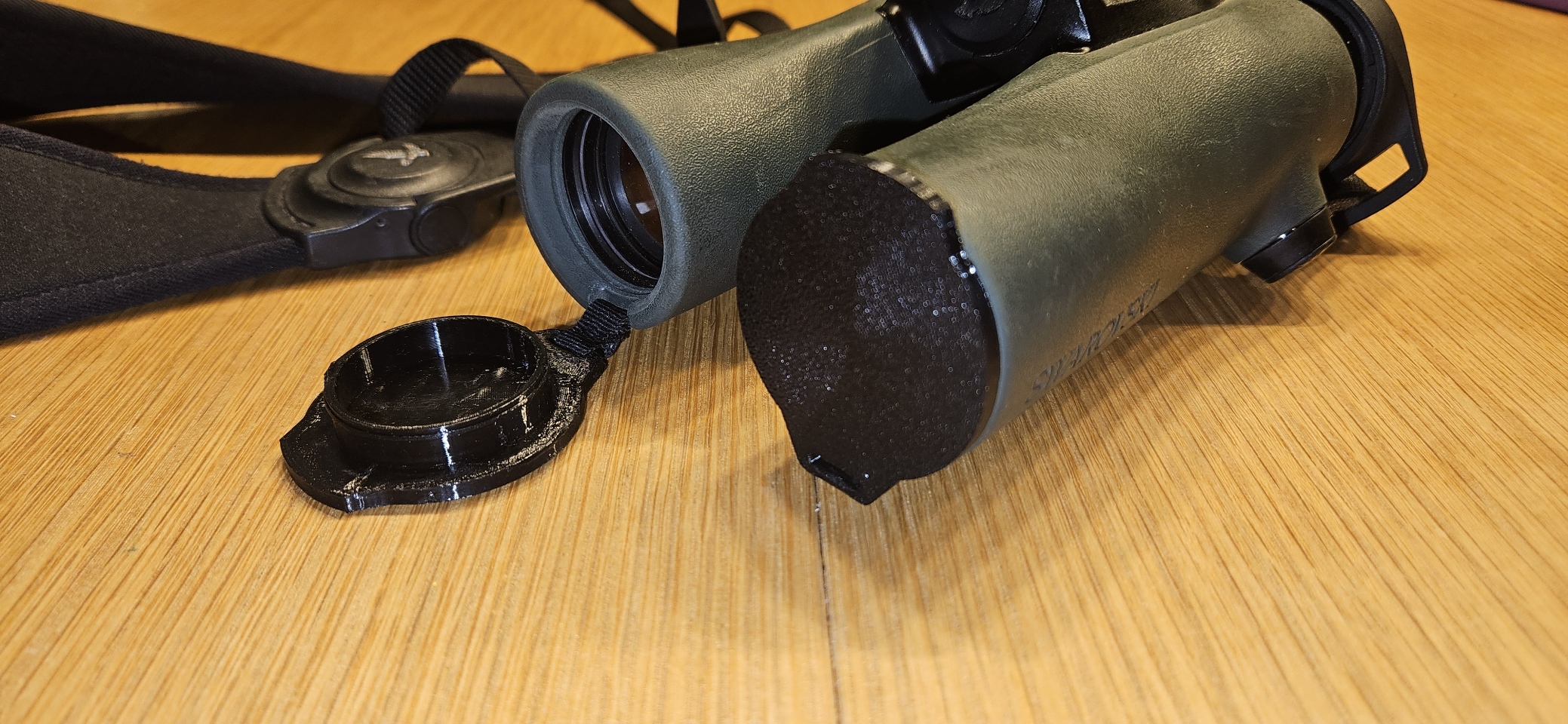 Mẫu nắp che kính ống nhòm dành cho Swarovski NL PURE 10x32, in bằng TPU với infill 25%. Không cần supports, lắp cố định bằng một miếng vải, phù hợp làm phụ kiện thay thế khi đi outdoor.