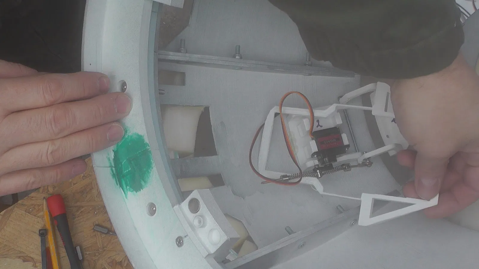 Thanh dẫn căn chỉnh giúp canh vị trí servo trong dome R2D2 cho đúng chuẩn. Thiết kế dựa trên ý tưởng từ Gonz Pousada J Luis và đã được chỉnh lại để phù hợp với hinges và servos thực tế.