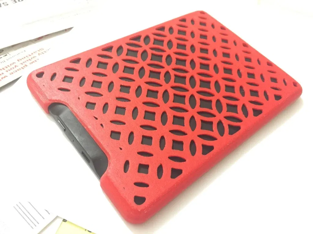 Ốp (case) ROTA kiểu hình học đơn giản cho Kindle Paperwhite Gen 6. In úp mặt phẳng xuống và dùng supports. Bản V2 ôm gần như chuẩn; phần đáy hơi lỏng, có thể dán thêm miếng carton để khít hơn. Dùng PLA ổn.