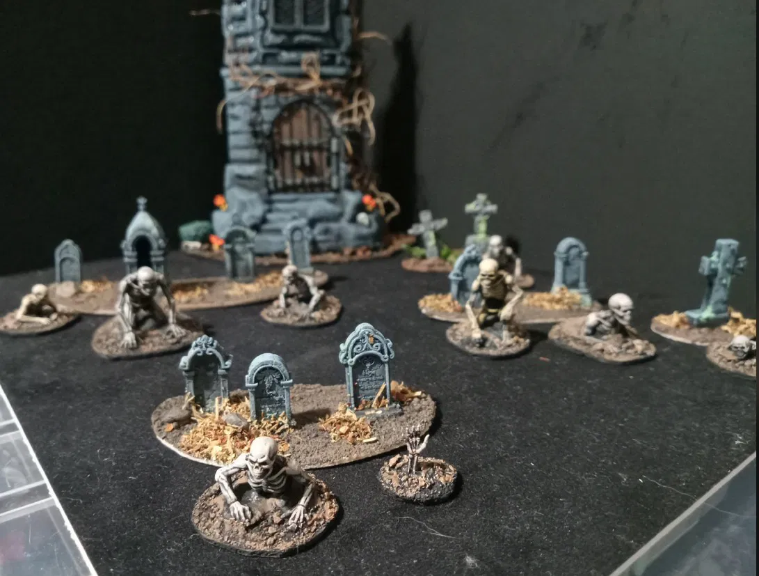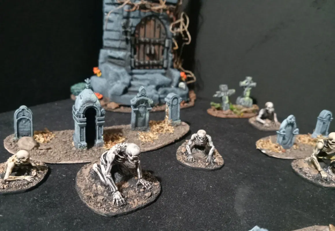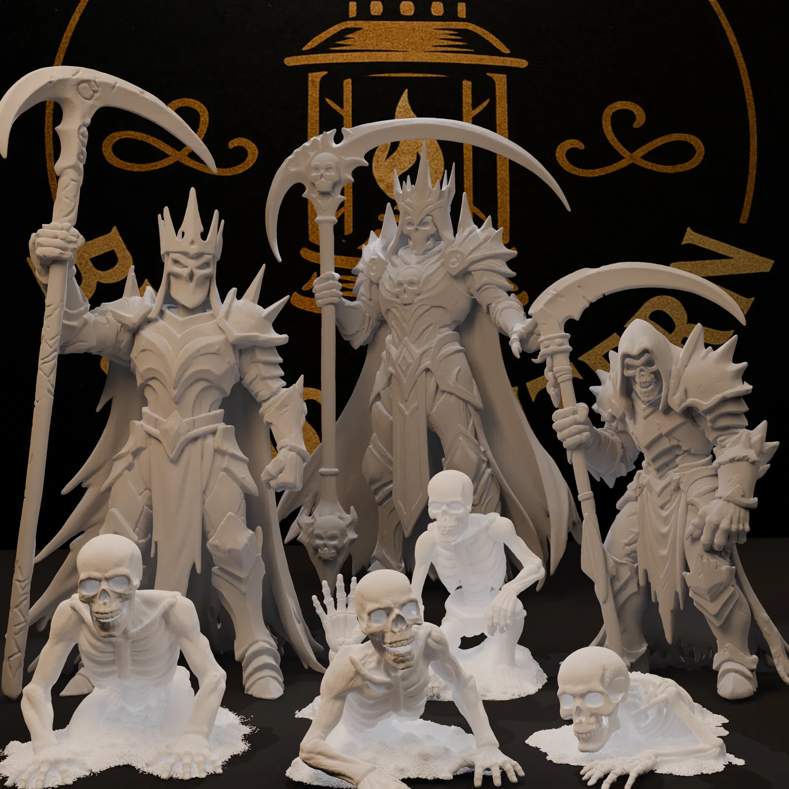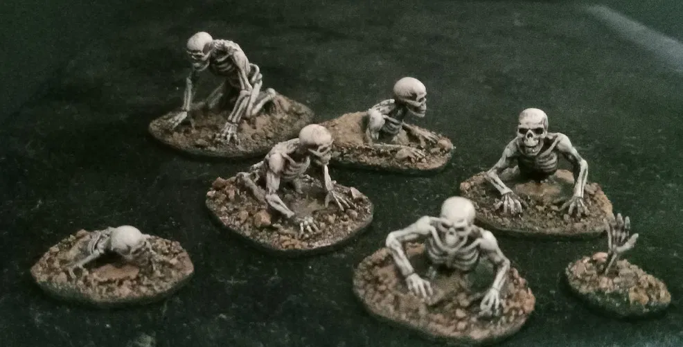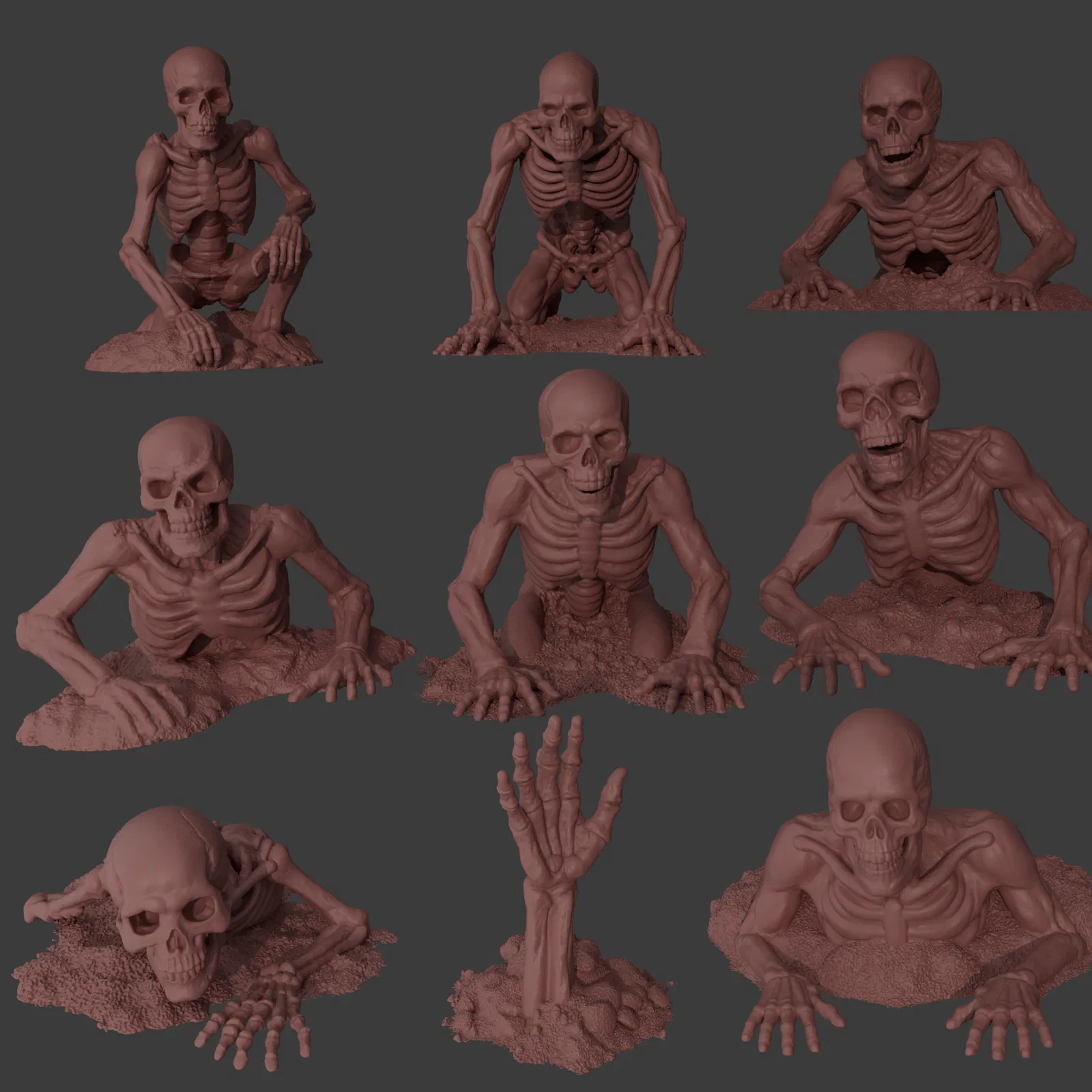 Thuộc Iron Ramparts Set. Bộ gồm 8 bộ xương trồi lên một nửa hoặc gần hết, kèm 1 cánh tay trồi lên. Quá hợp để dựng encounter cho necromancer trong DnD/Pathfinder/TTRPG và in 3D.