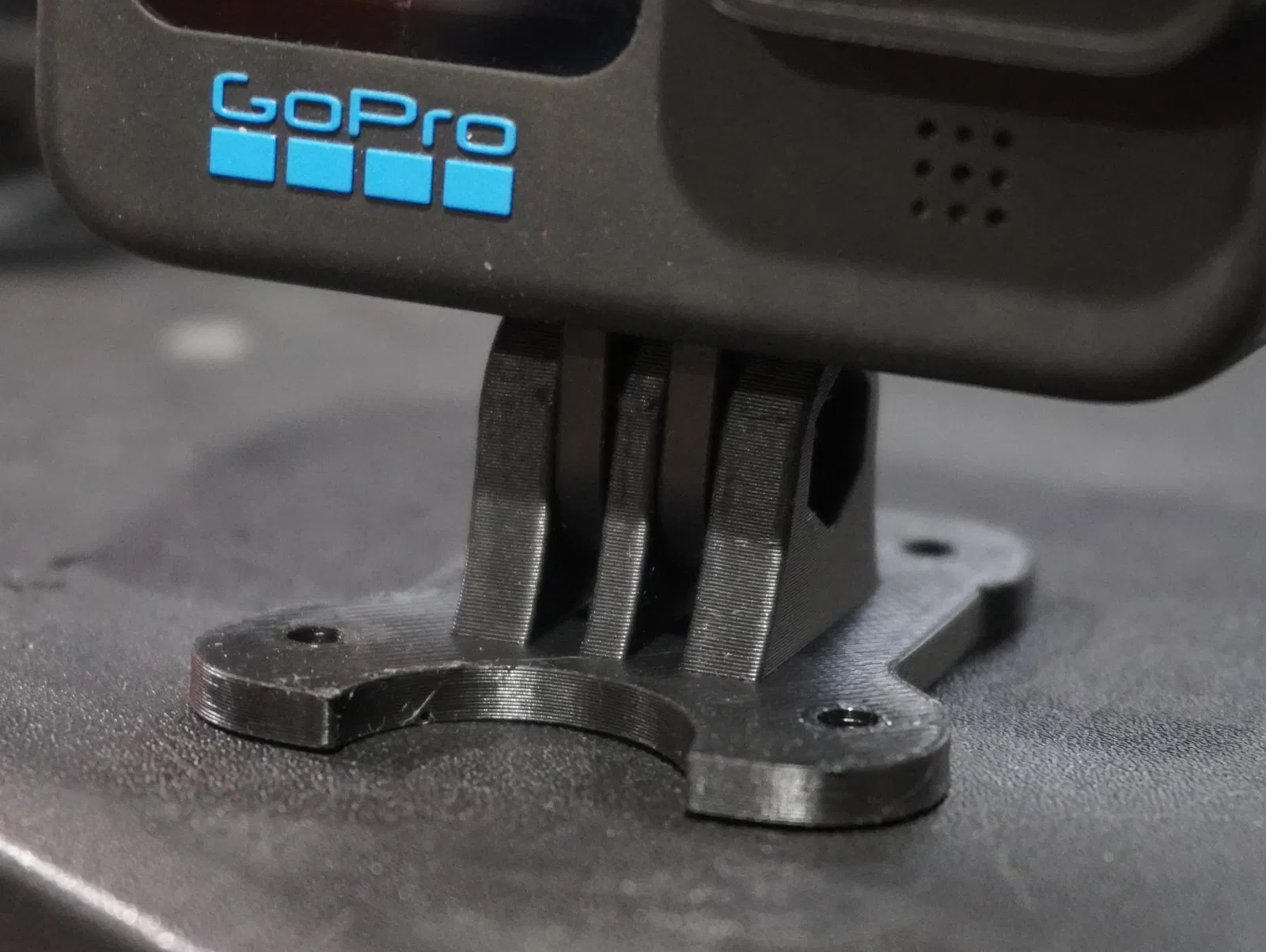 Ngàm camera kiểu GoPro 3 chấu dạng bắt ốc, lắp vừa frame Mark 4 FPV size 5–7 inch. Đế phẳng bắt trực tiếp bằng ốc M3, cho bệ gắn chắc chắn với hệ ngàm 3-tab phổ biến của action camera.