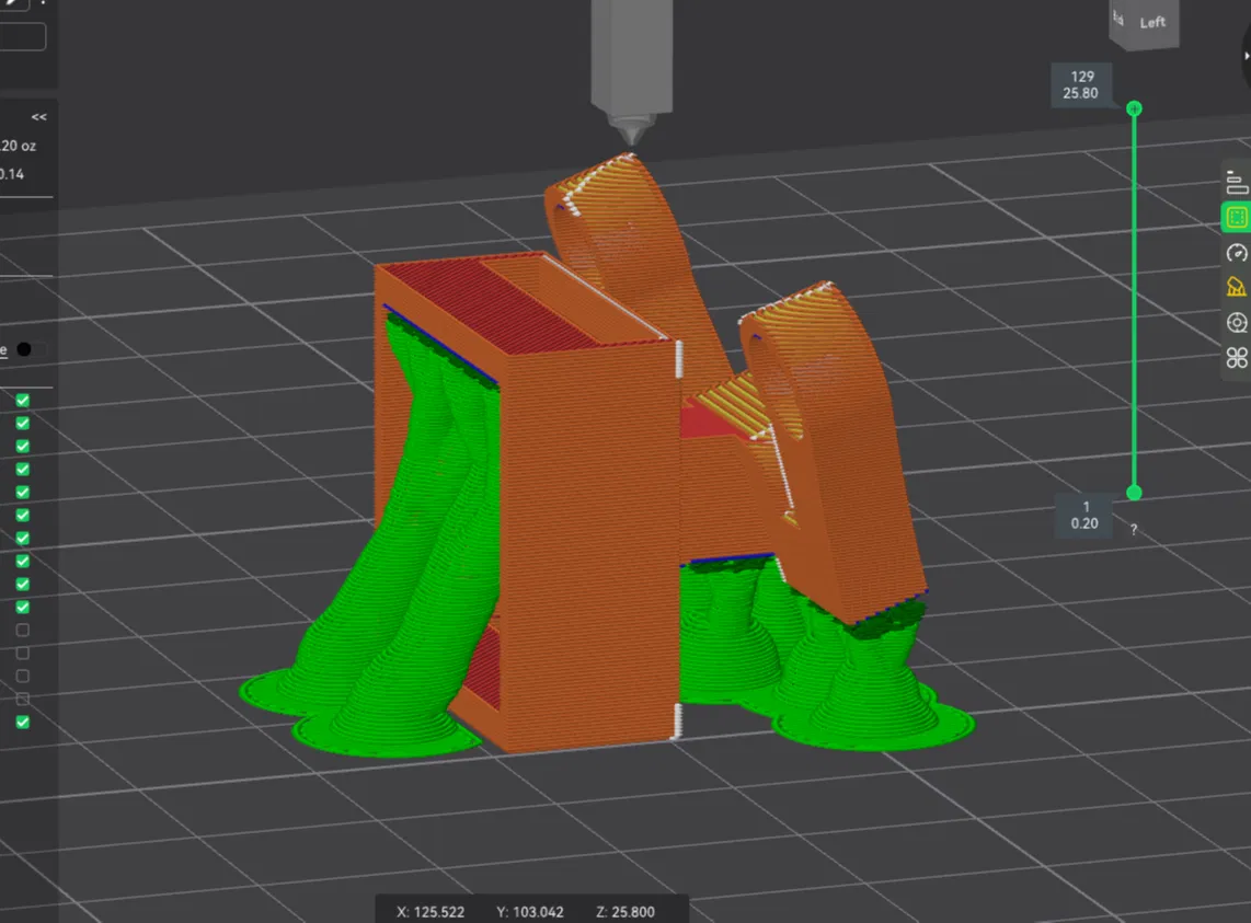 Infill: 100% (in đặc để phần cradle cứng cáp và chân vẫn dẻo)