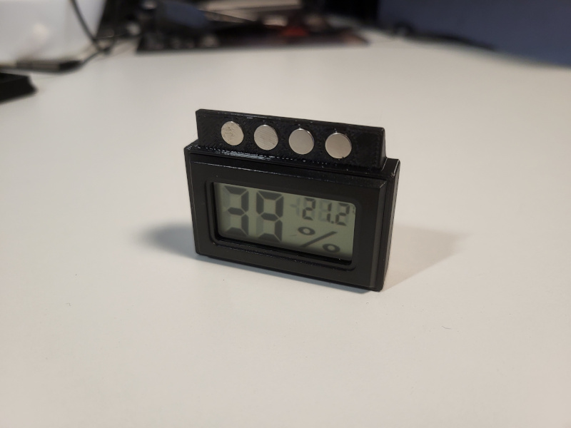 Đây là bản remix từ @Raymond ‘Hygrometer house for Prusa Core One’, nhưng thay vì dùng nam châm 20x5x2mm hoặc 20x6x2mm thì bản này dùng (tối đa*) bốn nam châm tròn 6x2.5mm (các loại nam châm khác cũng xài được, ví dụ cao 2–3mm đã xác nhận chạy ổn, miễn là đường kính 6mm). Nam châm tròn giờ sẽ áp trực tiếp lên phần kim loại (không còn nằm bên trong vỏ nhựa nữa) nên lực bám chắc hơn nhiều. *Ít hơn bốn viên chắc cũng vẫn ổn.