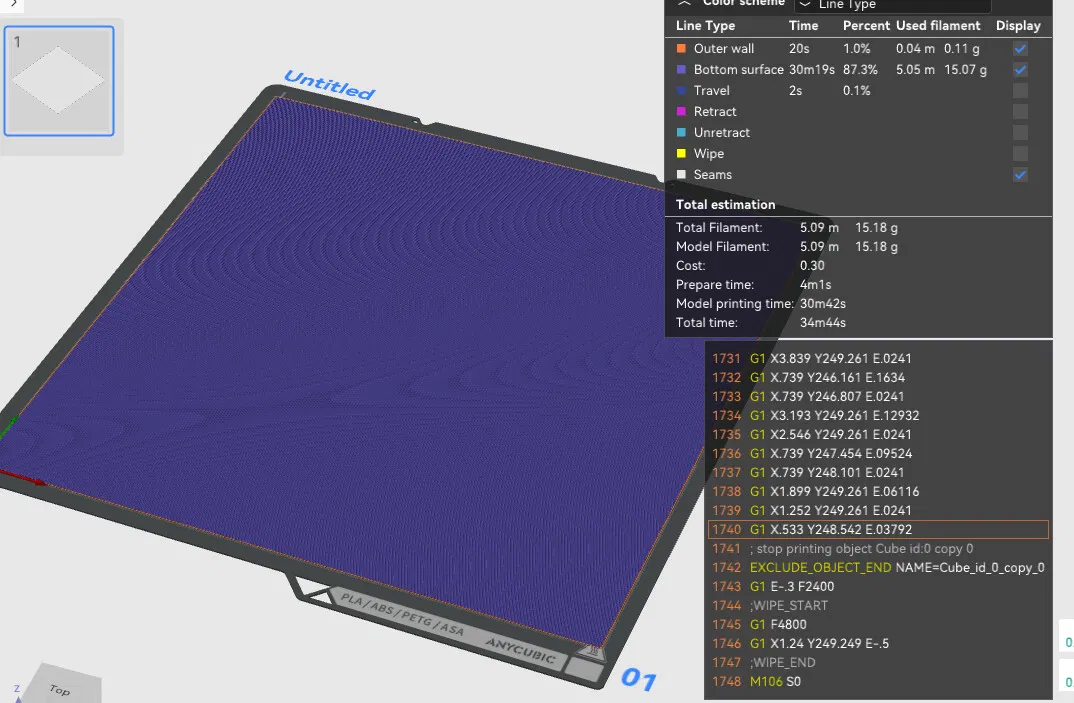 Bài test print để kiểm tra độ phẳng của hotbed trên Anycubic Kobra S1.