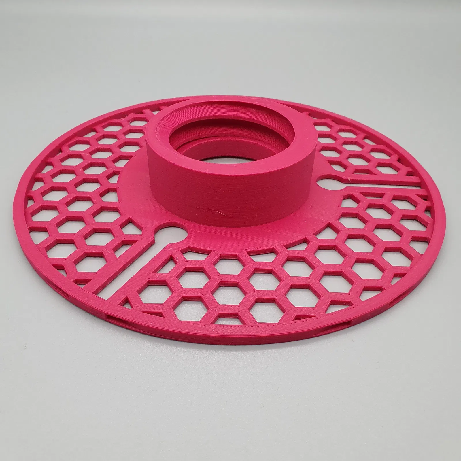 Giờ có 6 vị trí phân bố đều để giữ đầu filament 1.75mm, và đầu filament không bị thò ra xa như bản gốc. Họa tiết lục giác có thể giữ đầu 2.85mm.