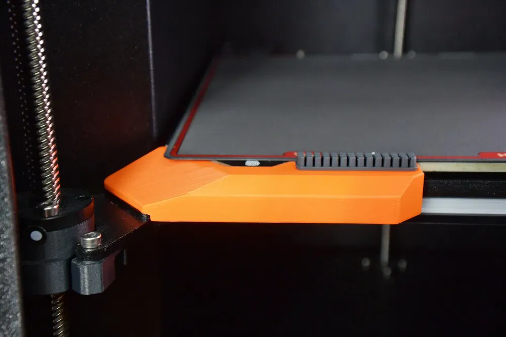 Bộ phận này dài và mảnh, khiến nó rất dễ bị cong vênh ở mặt hẹp hơn. Rất nên sử dụng vạt (brim) và có thể dùng các chất kết dính như Magigoo hoặc tương tự nếu bạn chọn sử dụng vật liệu dễ bị cong vênh.