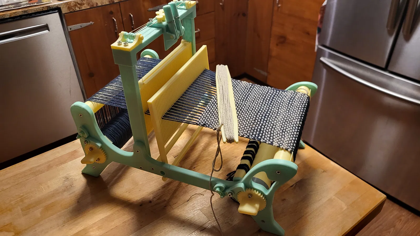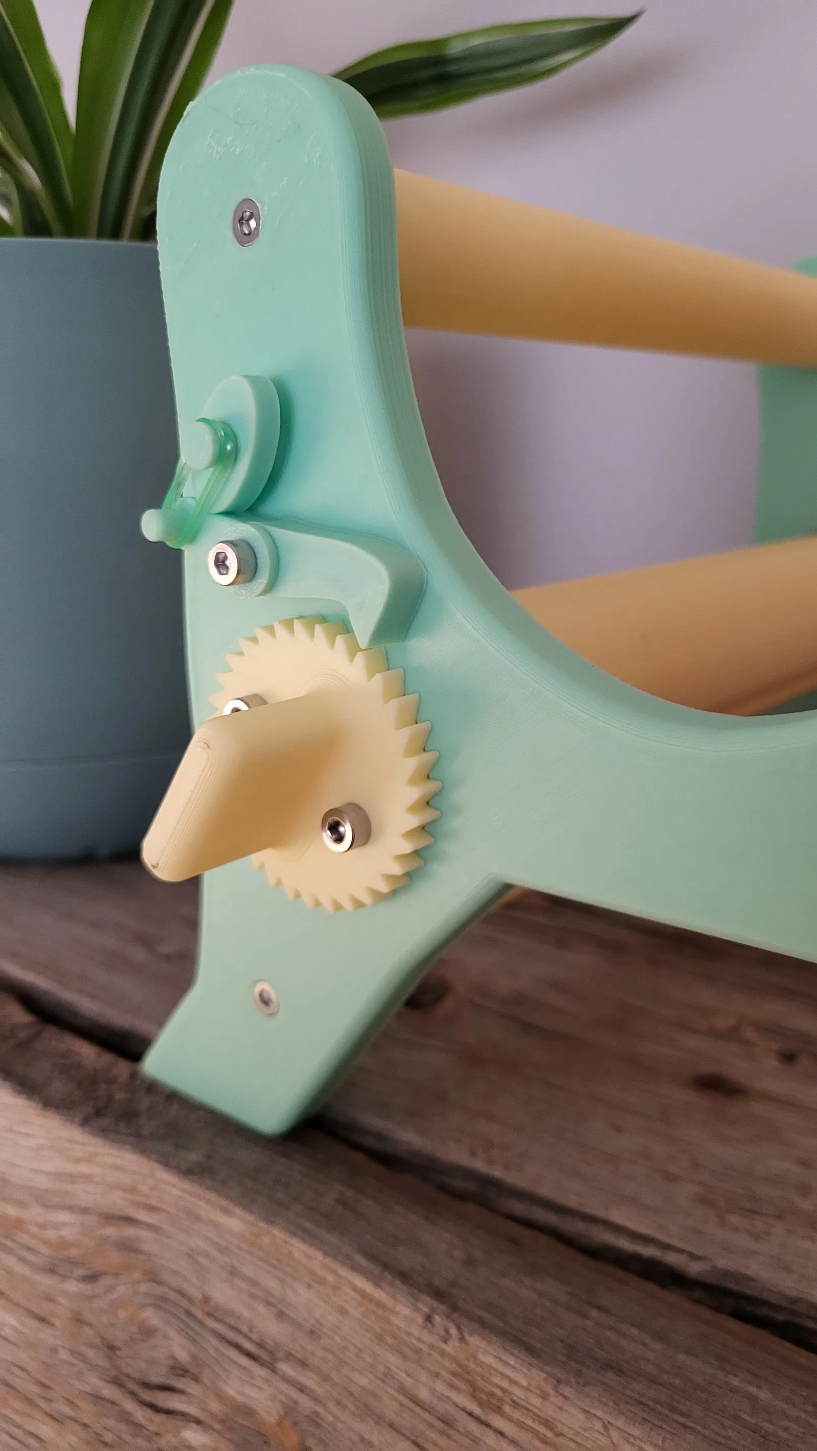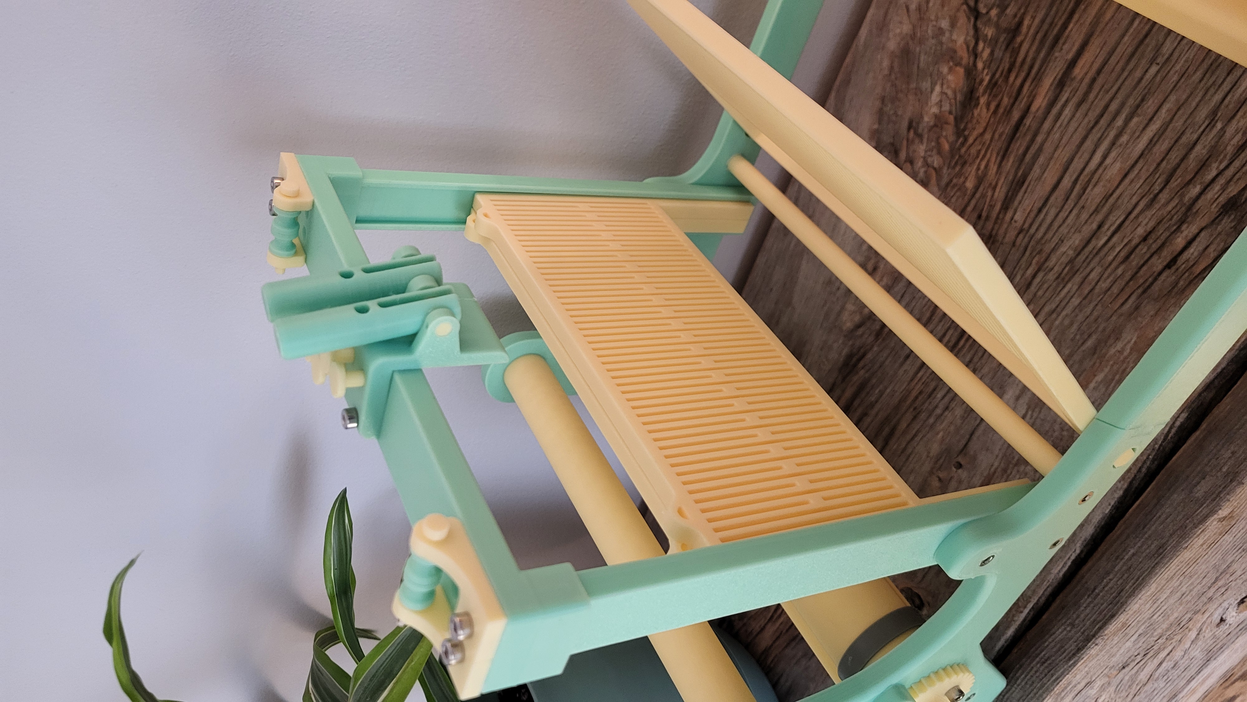 Máy khung cửi dệt để bàn, thiết kế in không cần support (đã tính trong bản in). Có hướng dẫn lắp ráp trong phần mô tả. Chuẩn bị M4 heated insert, bu lông M4 12mm, ~2kg PLA và nylon/polyester thread.