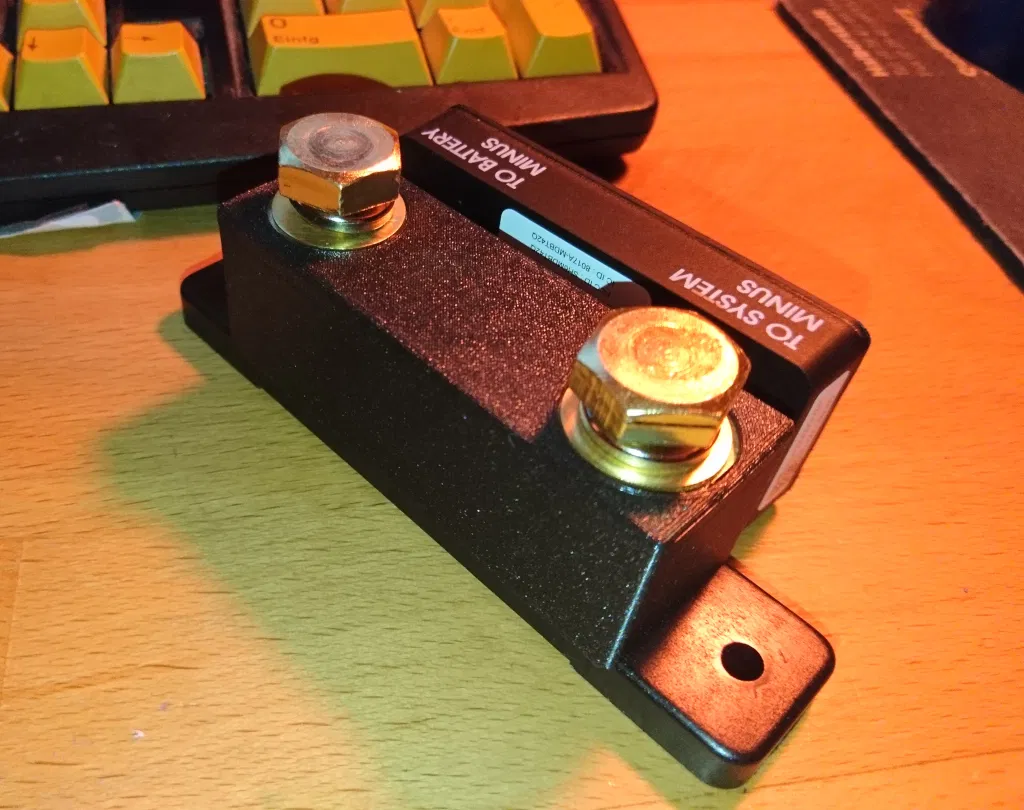 Nắp che cho Victron shunt, giúp che bớt phần hở. Thiết kế in với PETg, không cần hướng dẫn in đặc biệt. Lưu ý quan trọng: nắp flush với contact của shunt, không dùng washer dưới lug.