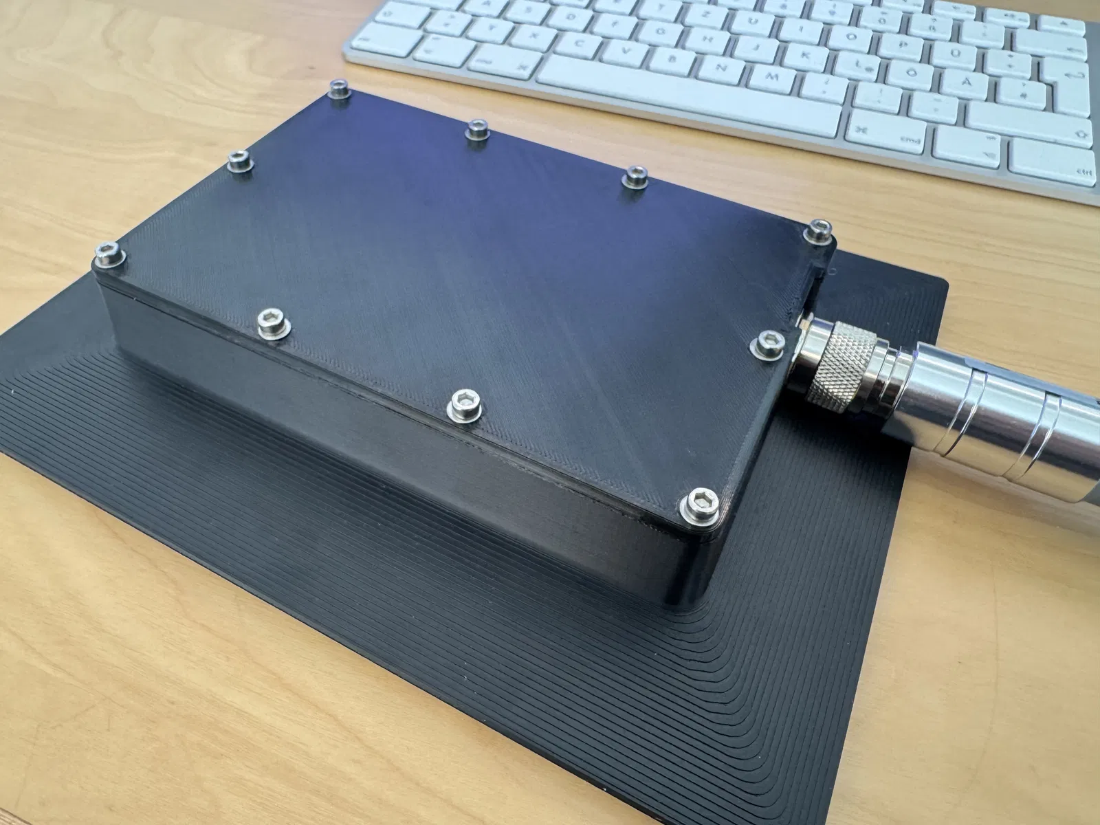 Version 0.2 (2025-12-09): Thay đổi một số kích thước (ví dụ phần khoét cho ê-cu lục giác của anten quá nhỏ, lỗ trên gasket và cap quá lớn)