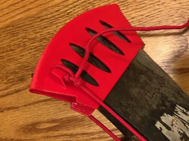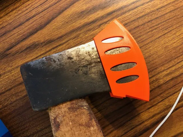 Đây là một người bảo vệ rìu tôi thiết kế cho một rìu 2-1/2. Có hai phiên bản, một phiên bản được giữ vào rìu bởi các barbs tích hợp và phiên bản còn lại cũng có các tính năng để cho phép bạn thêm một sợi dây để giúp bảo vệ lưỡi dao vào rìu. bền.