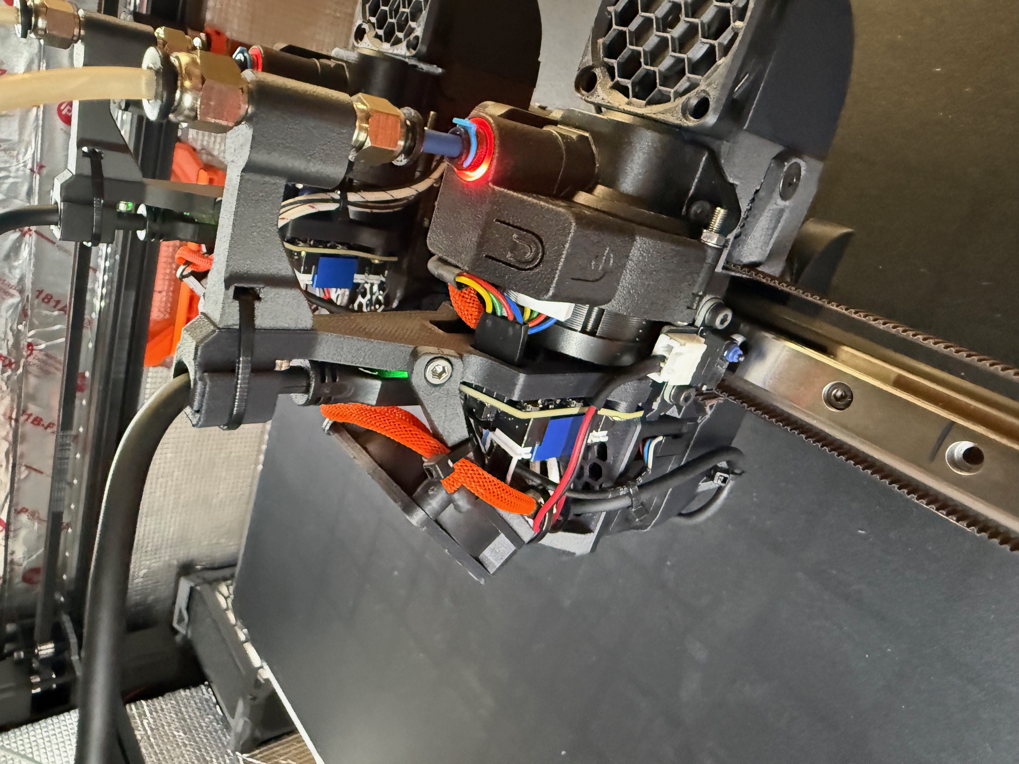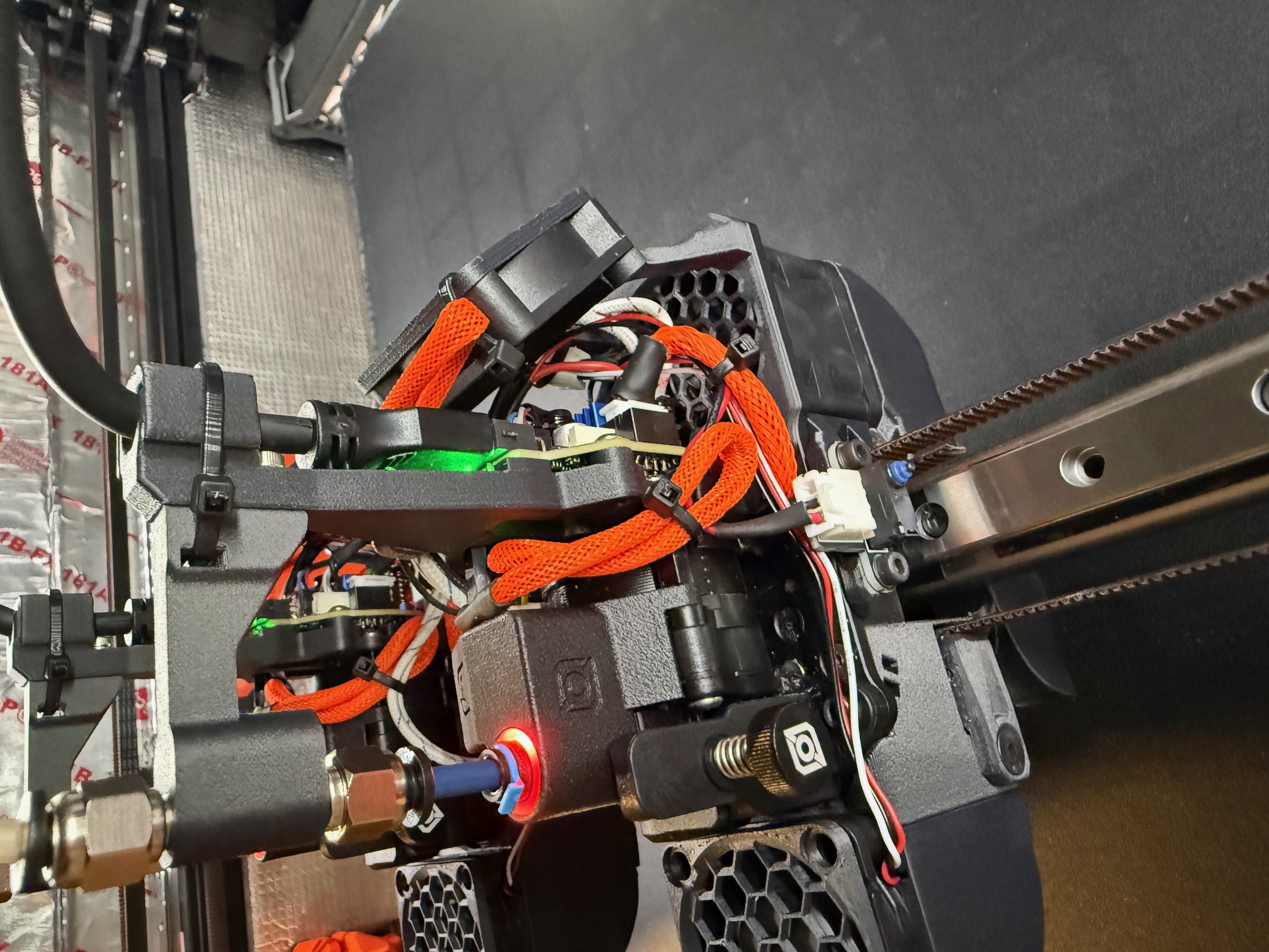 Mình thêm ngàm gắn quạt 4010. Cần thêm insert M3 và ốc/vít đi kèm. In với nozzle 0.4mm và dùng paint-on support cho tất cả các vùng mỏng và phần phía trên. Bản thân cái quạt là một thành phần chịu lực. Đấu quạt 4010 loại 2 dây vào cổng hotend fan.