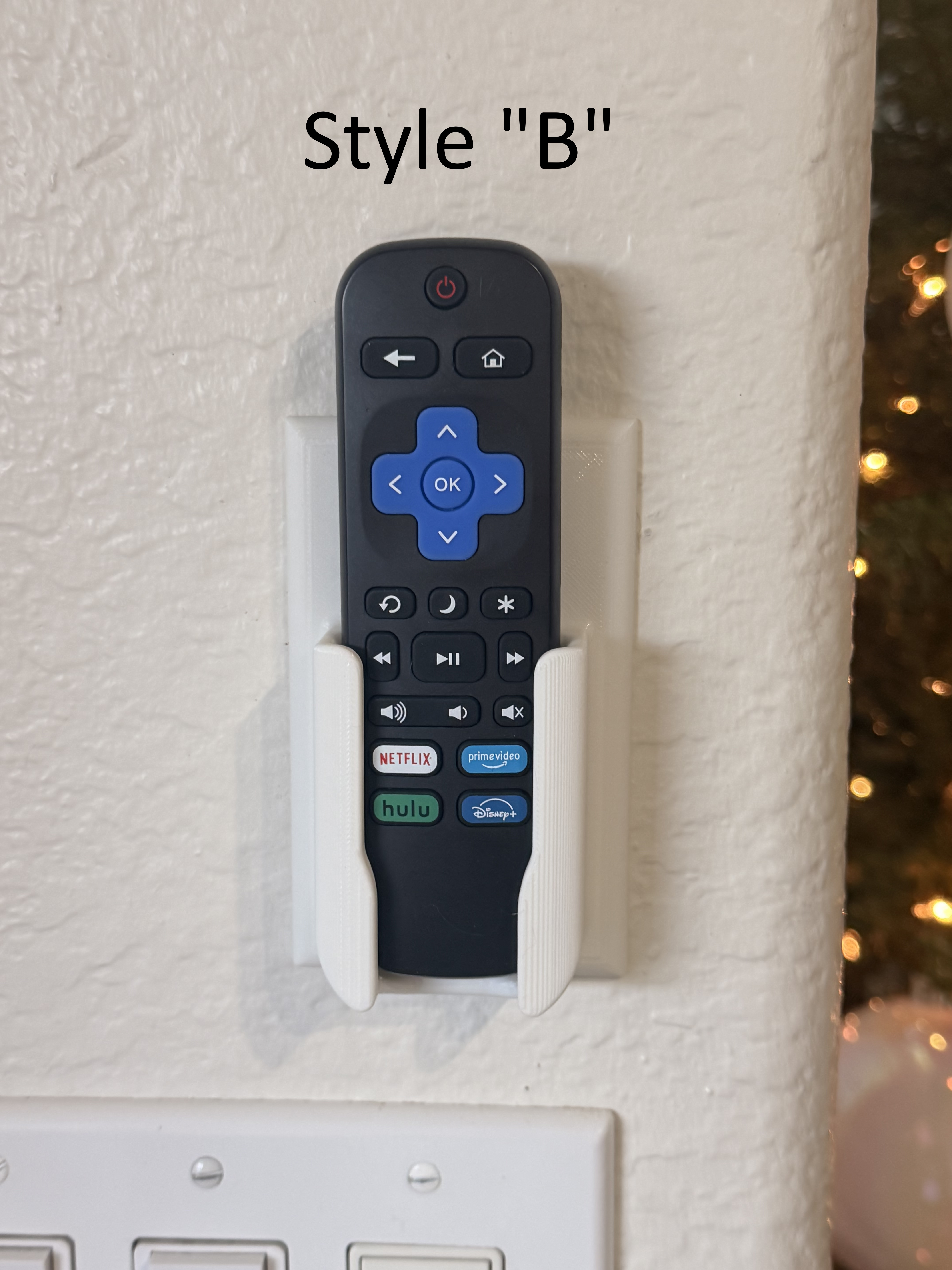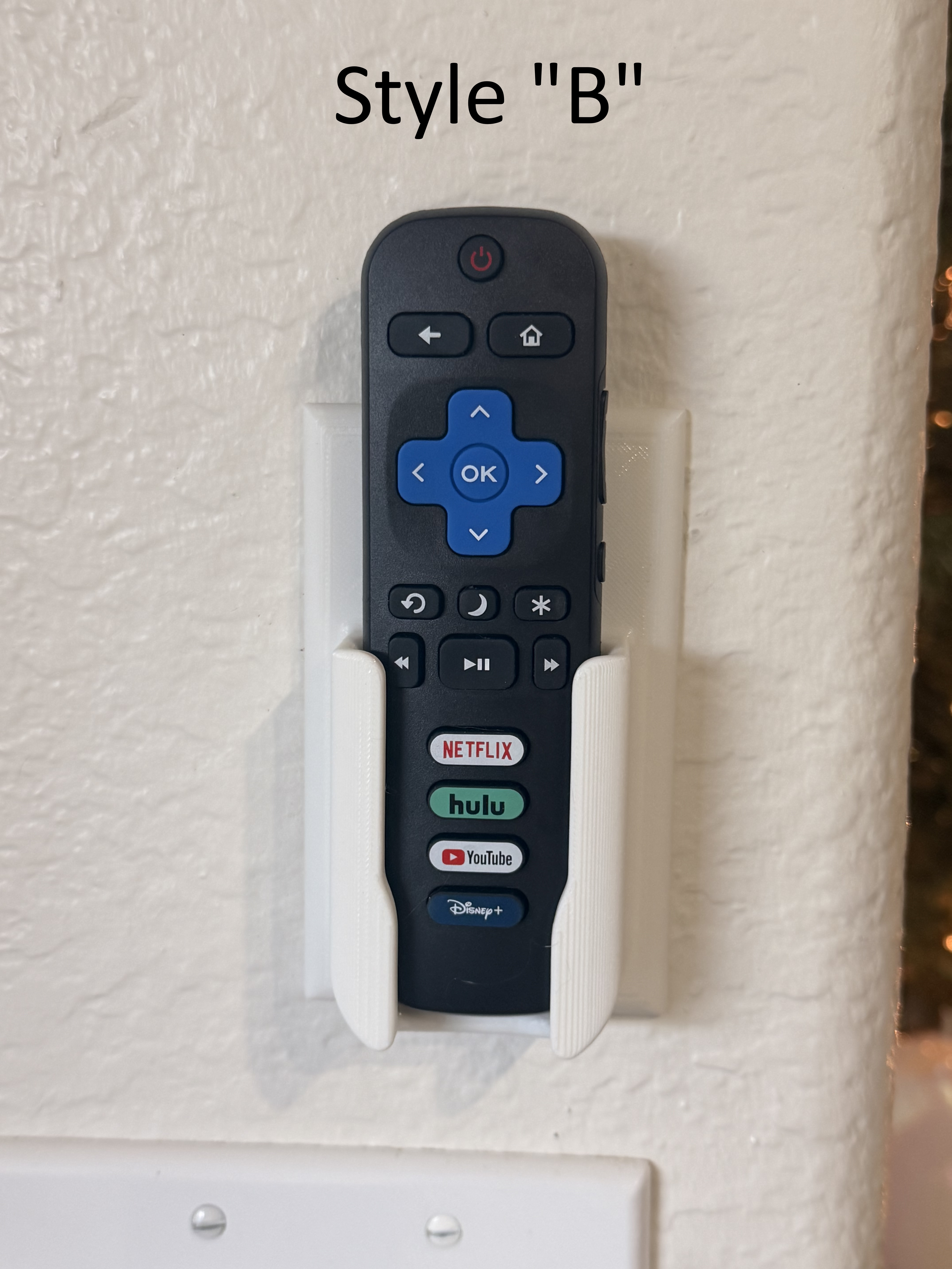 Style B là bản holder mới hơn, hợp với remote vuông/khối hơn, các góc bo nhỏ hơn.