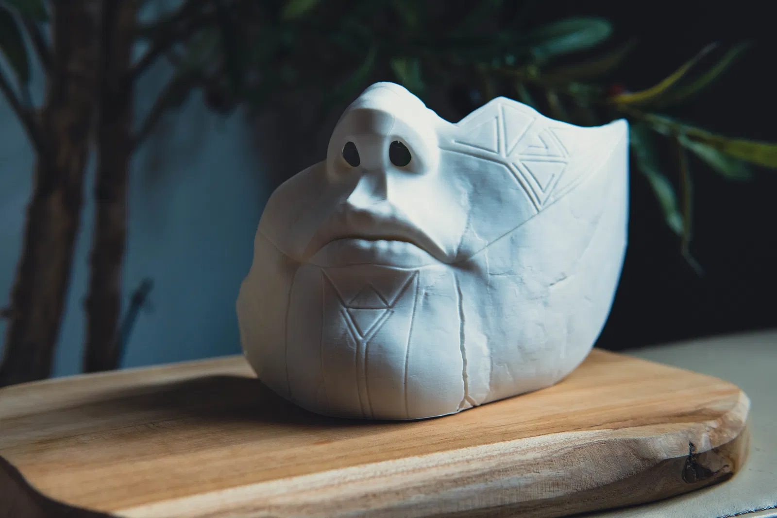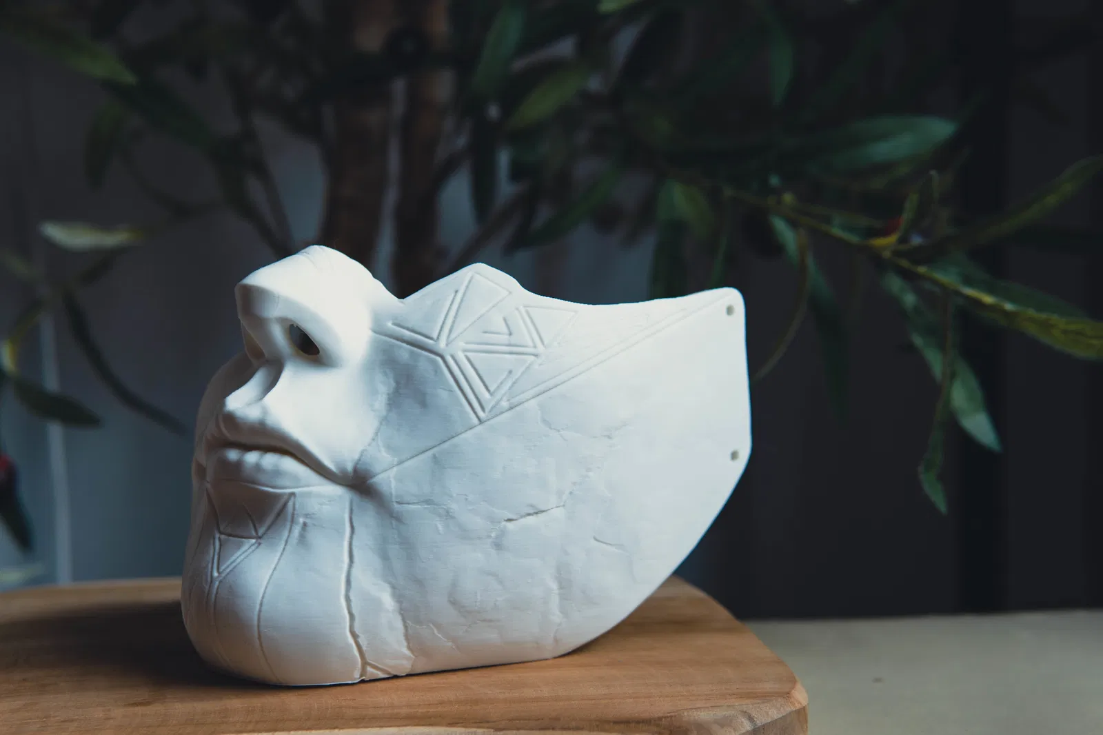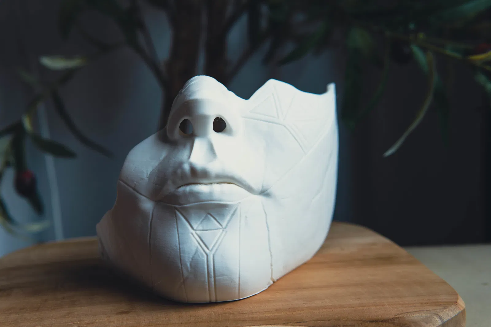 In khá đơn giản, mình có thêm các rãnh và vết nứt để tạo cảm giác cũ/hao mòn hơn. Sơn cũng khá dễ, mình sẽ thử sơn sau rồi đăng kết quả. Để đeo vừa khít mặt bạn, nhúng vào nước nóng (bắt đầu từ 40°C rồi tăng dần; nếu nước quá nóng thì sẽ làm hư mẫu).