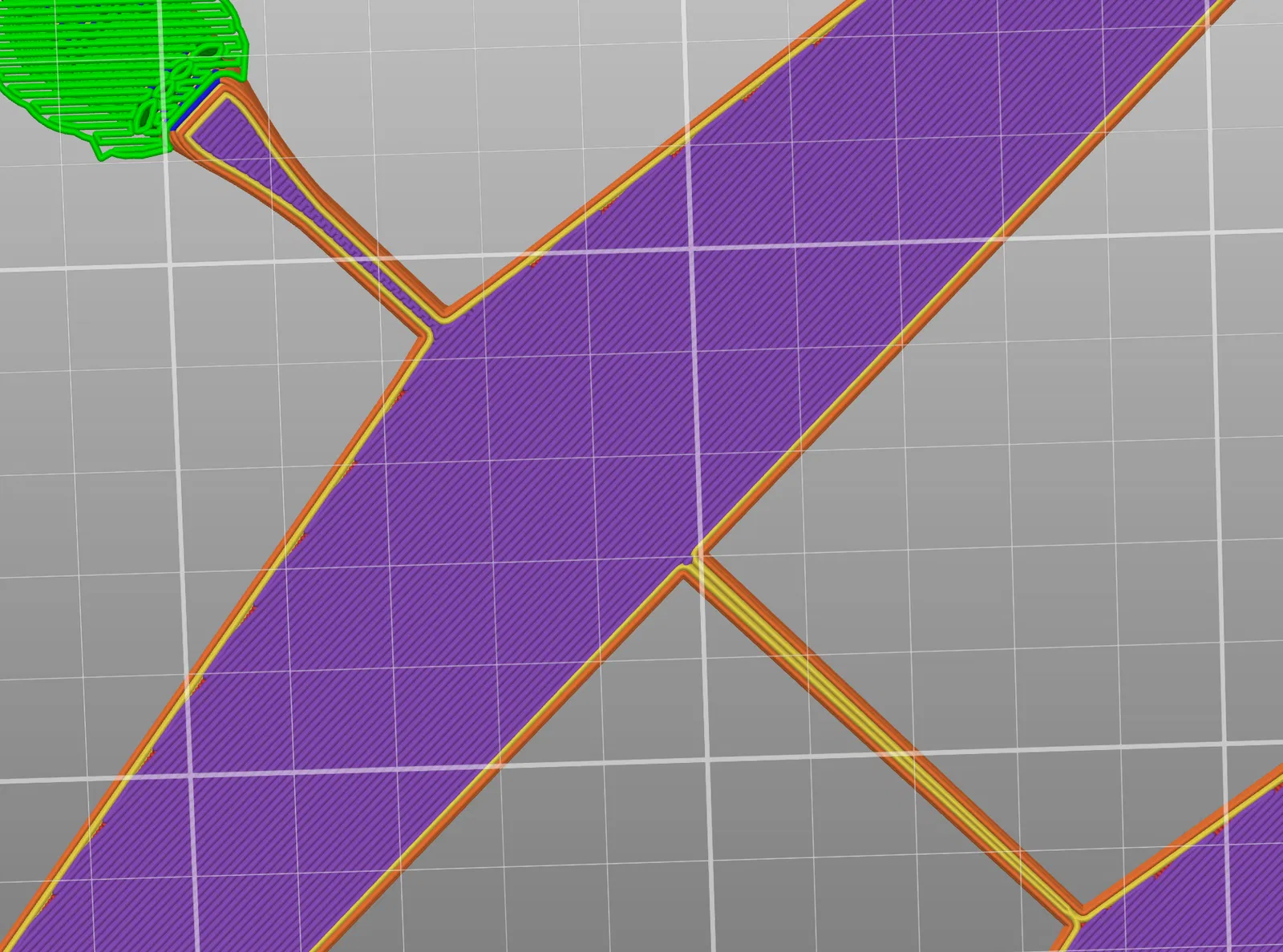 Falcon có orientation trên build plate tốt hơn, giúp tải lên cánh khi bay đối xứng và cánh uốn đối xứng. Các glider khác thường không để sải cánh song song với các đường của lớp đầu (first layer lines), dẫn tới tải và độ uốn bị lệch.