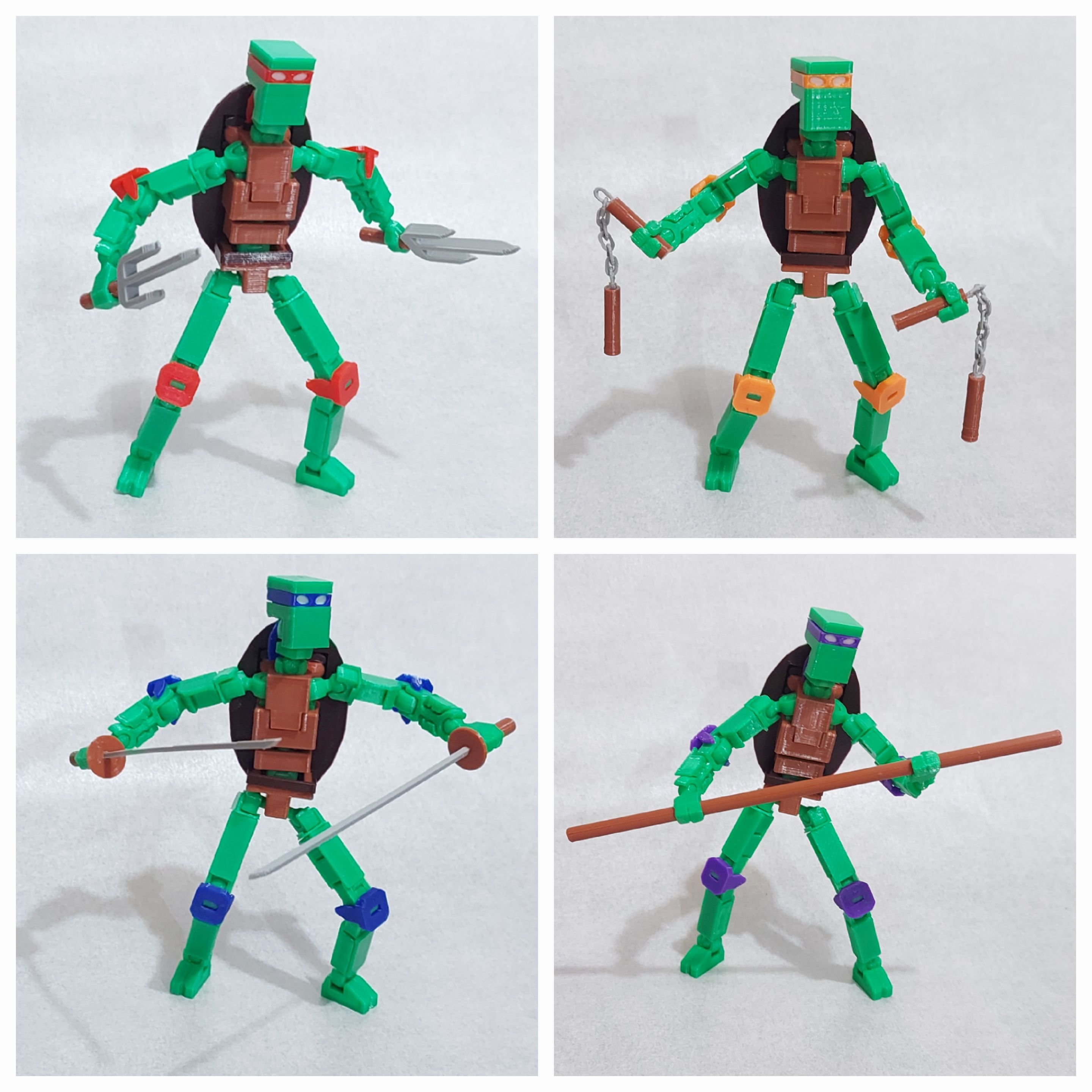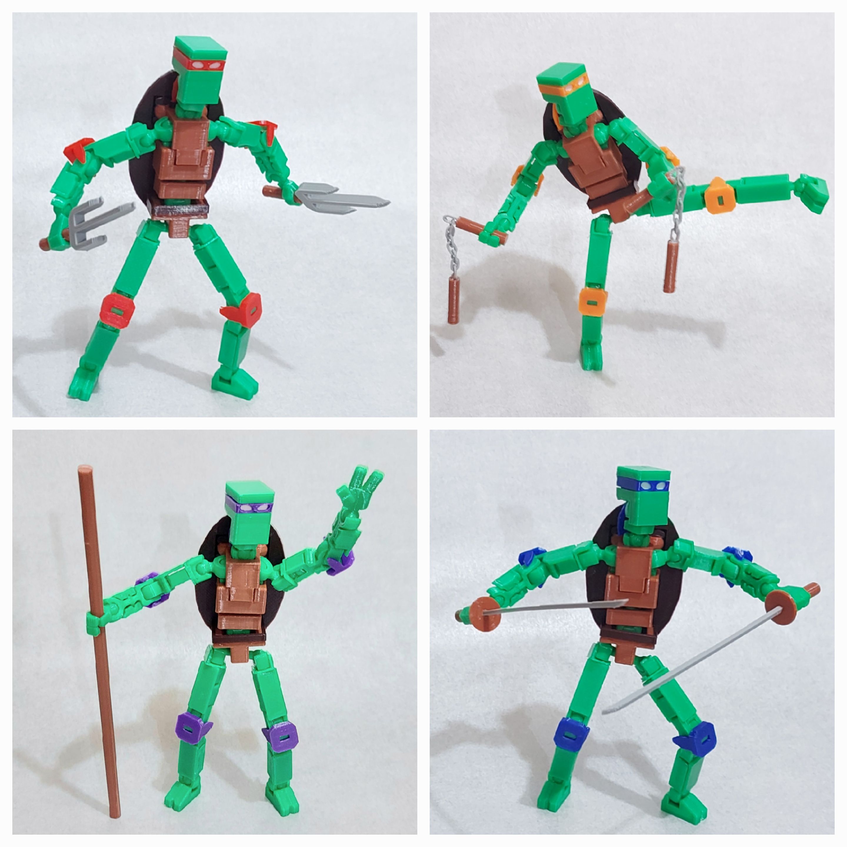 Skin Lucky 13 theo chủ đề Teenage Mutant Ninja Turtles (TMNT) với tinh thần “Cowabunga!”. Cần armature + skin Lucky 13 và file Body v2.stl từ mẫu multi joints for Lucky 13 để lắp ráp hoàn chỉnh.
