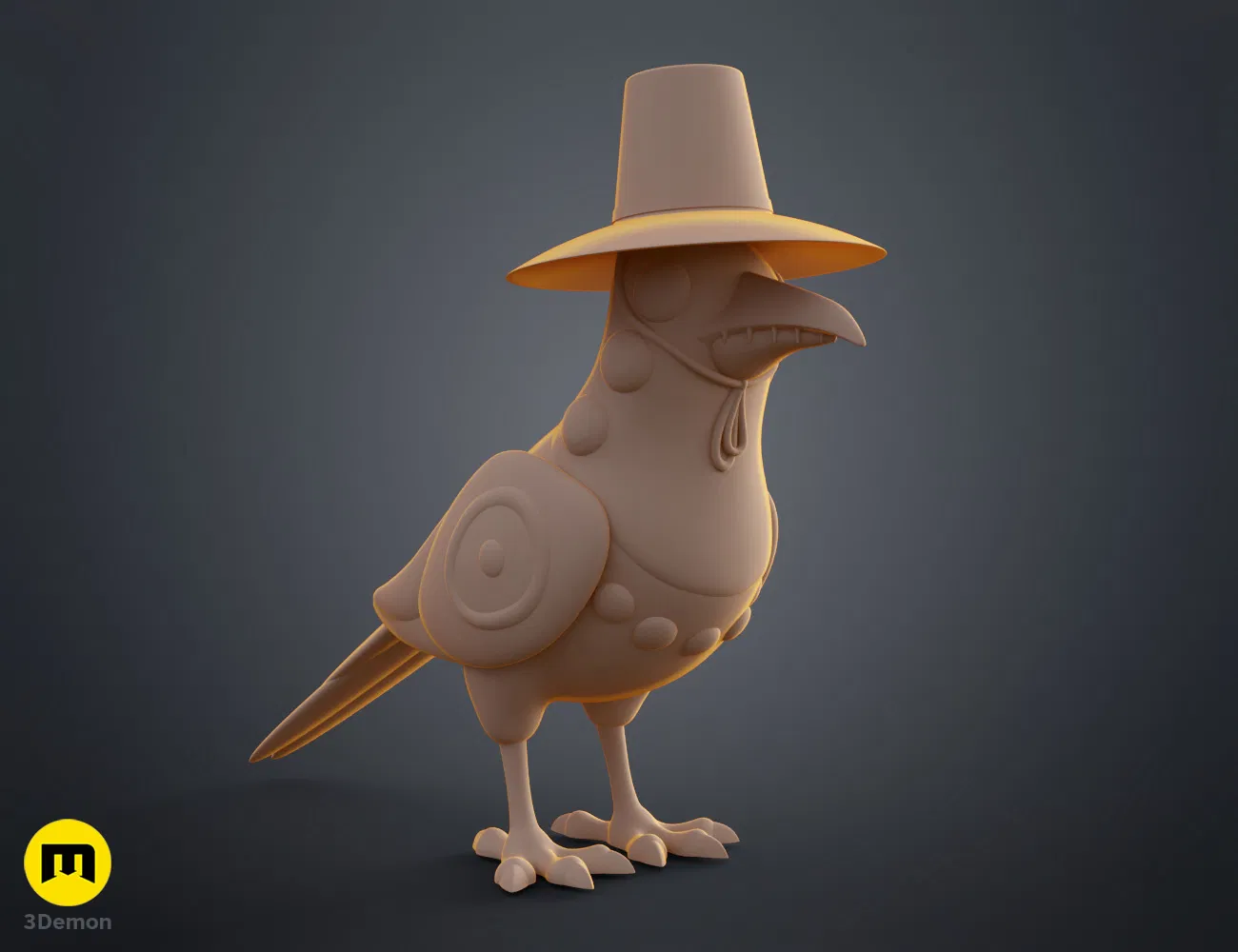 Đây là mẫu 3D dạng số có thể in 3D của Sussie – chim ác là trong KPop Demon Hunters. Mẫu có 2 phiên bản: một phiên bản đội nón có các vòng để gắn dây thật, và một phiên bản khác đã tích hợp sẵn dây vào trong model.