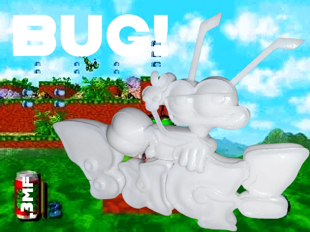 Mẫu BUG! lấy cảm hứng từ game Sega kinh điển, kèm sẵn bệ cỏ (grass base) để trưng bày. Râu (antennae) tách rời, có thể cần chà nhám cho khít tuỳ độ chính xác máy in. In resin/filament đều ổn.