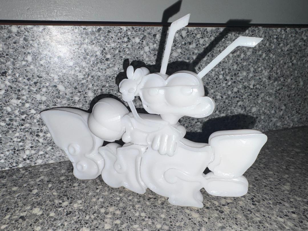 Mình in Bug và phần râu bằng resin, còn cái bệ thì in bằng filament. Tuy vậy, dùng cách nào cũng được hết!