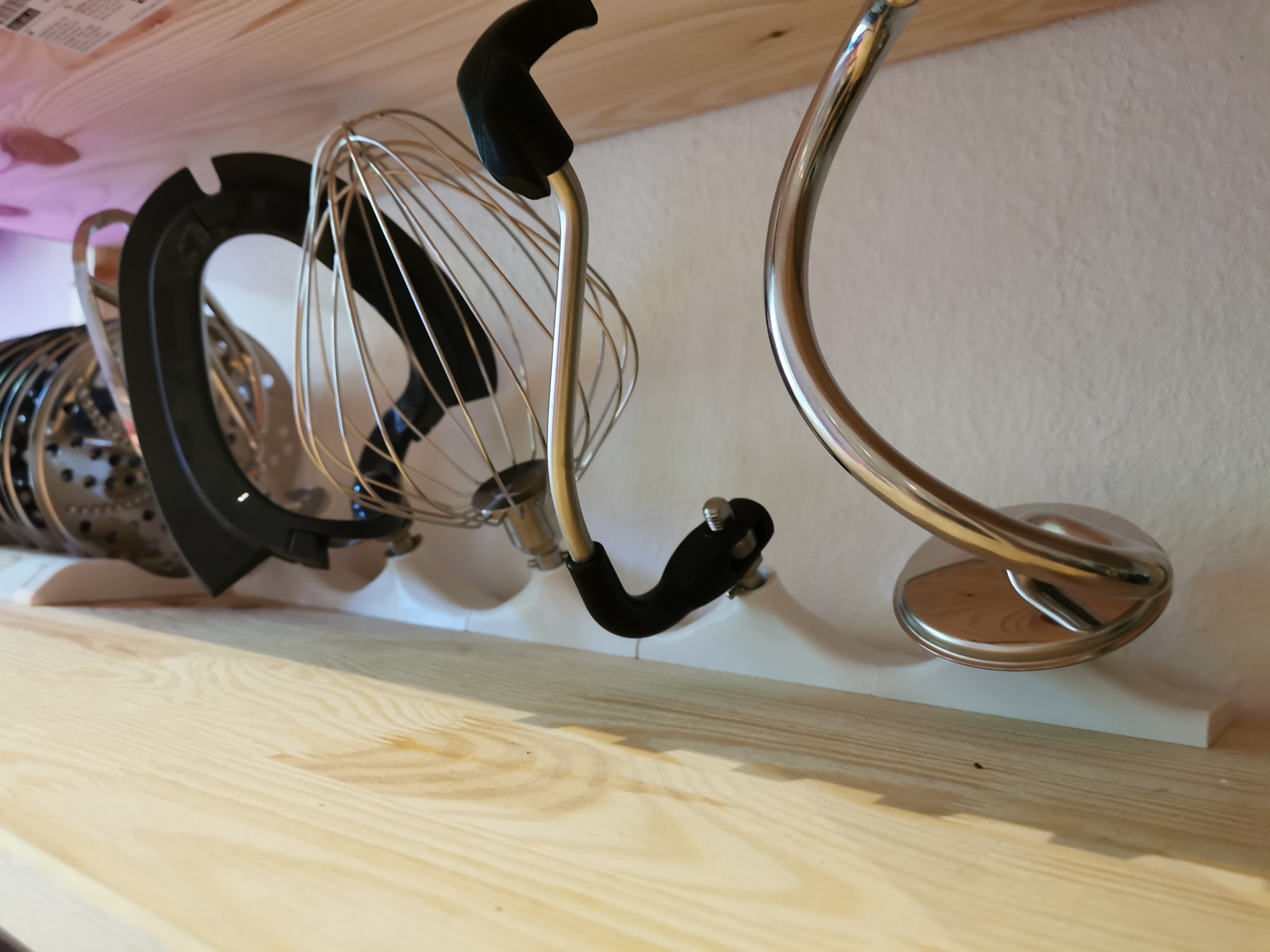 Mình làm cái giá đỡ beater này cho các phụ kiện Kenwood CookingChef để gắn hết lên kệ cho gọn. Việc gắn được thực hiện bằng 2 con vít 4x20 mm.