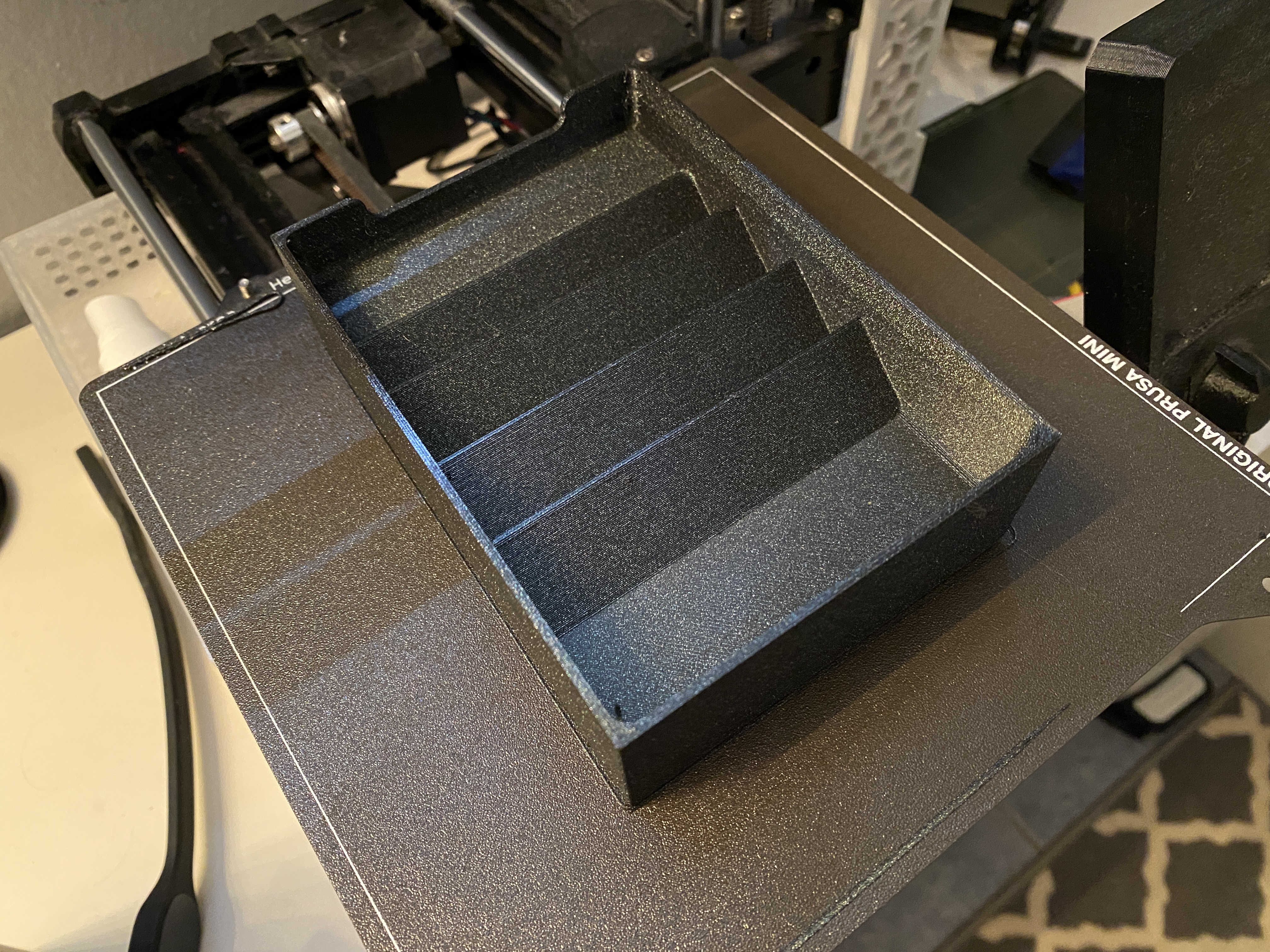Remix khay Monopoly tách phần tiền, thẻ và khu nhà/khách sạn thành nhiều miếng để in vừa Prusa Mini. Thiết kế vừa khít khi vẫn giữ cardboard inlay gốc (255×125×37 mm), giúp phụ kiện gọn gàng, dễ bày/dọn.
