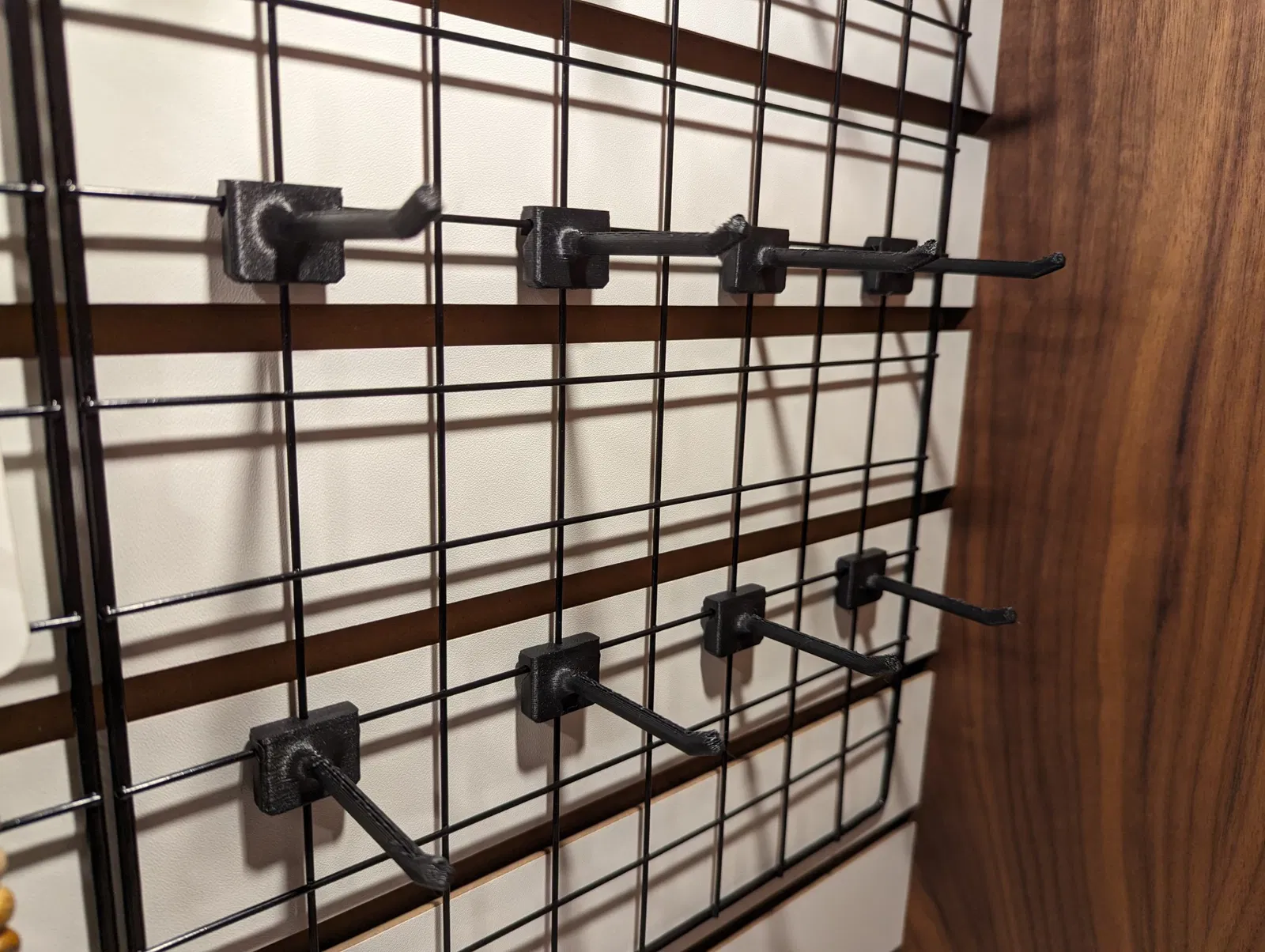Vợ muốn móc cho các khối lưu trữ dây của cô ấy (~ 1,8 - 2 mm dày). Đặt một cái gì đó cùng nhau một cách nhanh chóng và những hoạt động này thực sự tốt. Họ chụp vào vị trí với một cú nhấp chuột thỏa mãn.