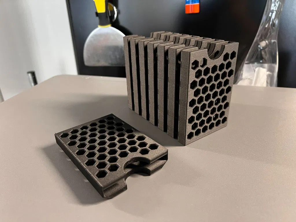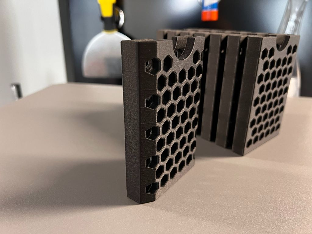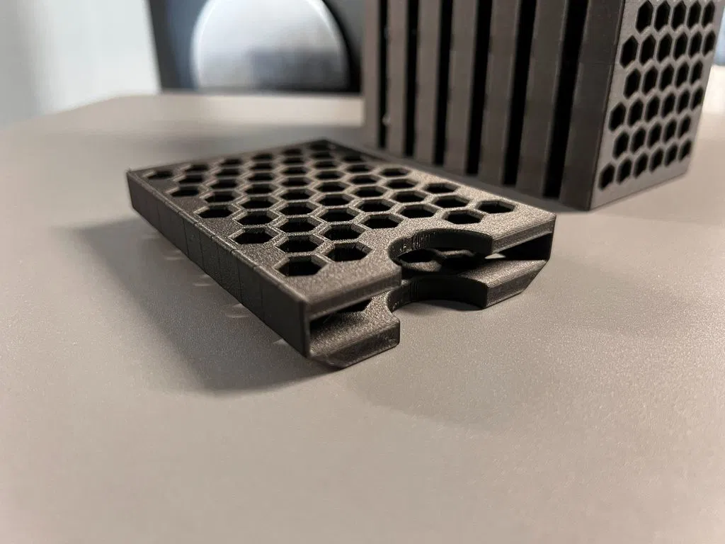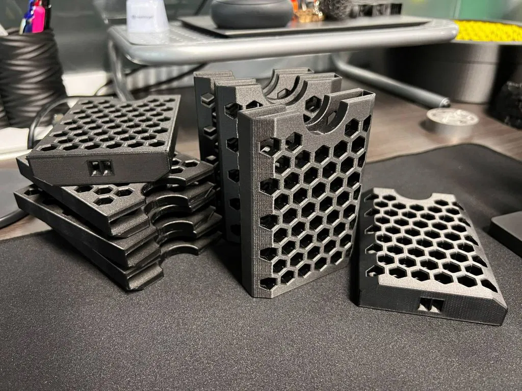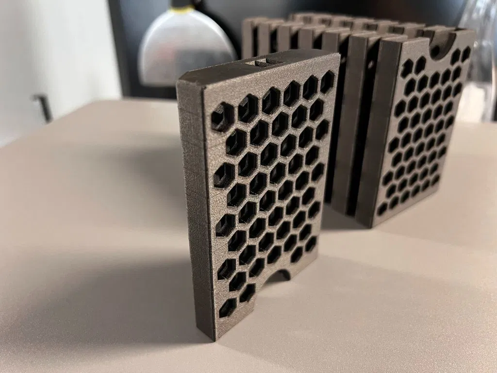 In PLA thì in layer 200um vẫn ổn, nhưng với vật liệu như ABS/Nylon bạn có thể cần layer height nhỏ hơn để các ô lục giác ra nét hơn. Không cần supports. In theo phương thẳng đứng; nếu bám bàn in không tốt thì có thể cần thêm brim nhỏ.