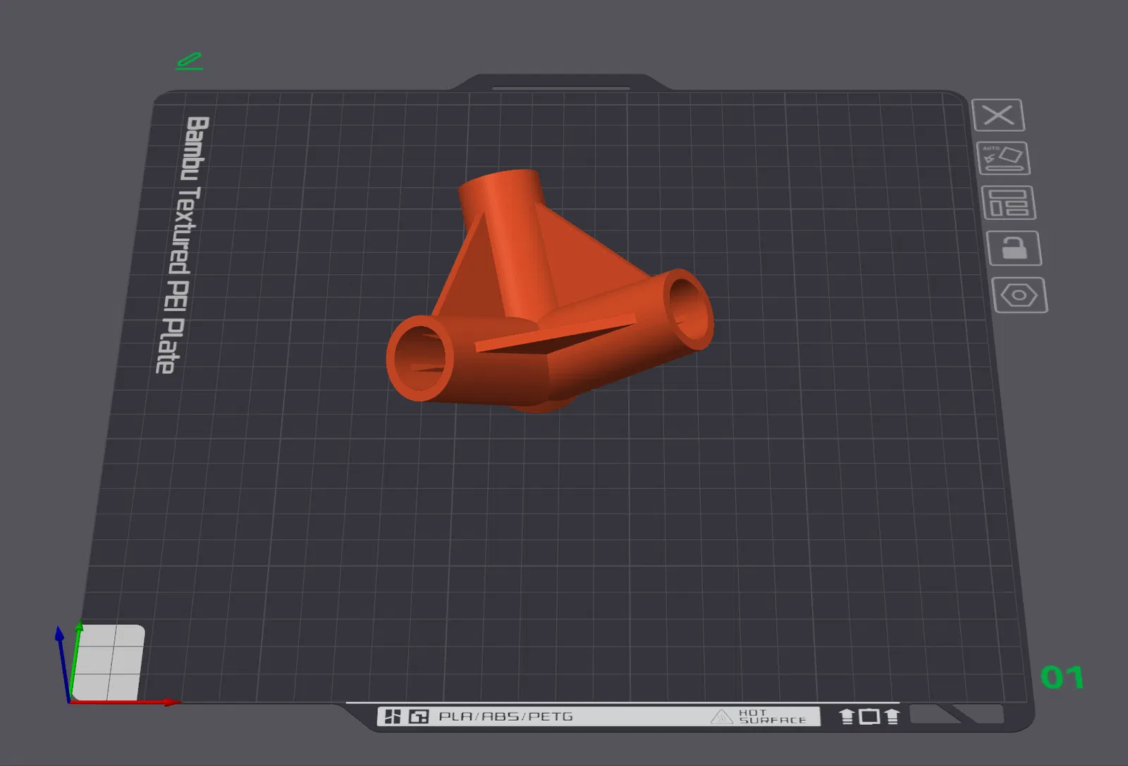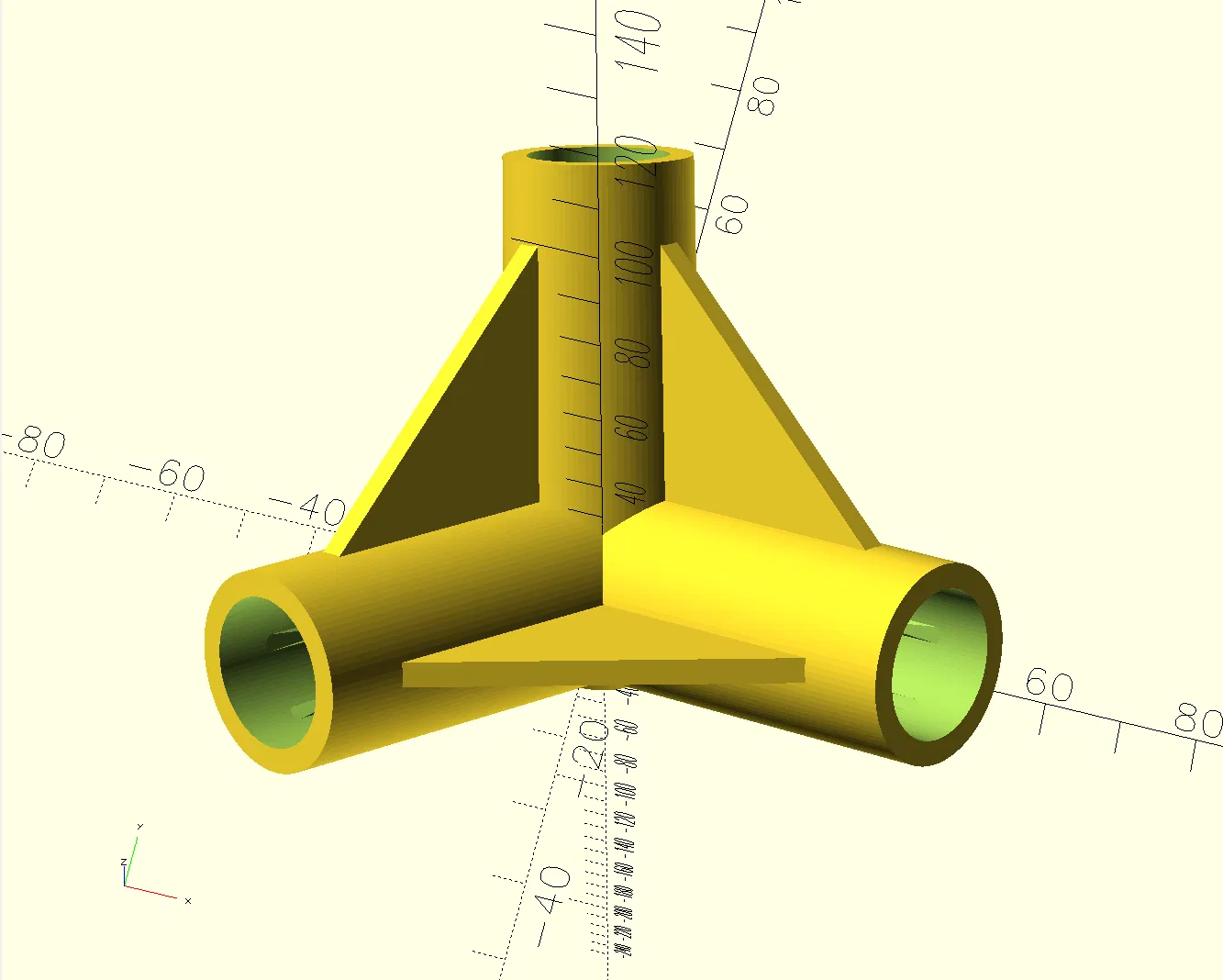 Đầu nối góc 3 hướng dạng parametric cho khung/grow tent, lỗ thẳng kèm gân ma sát linh hoạt giúp bù sai số rod để ôm khít, dễ lắp. Có sẵn STL 14/16/18/20/22mm và file OpenSCAD để tùy chỉnh.