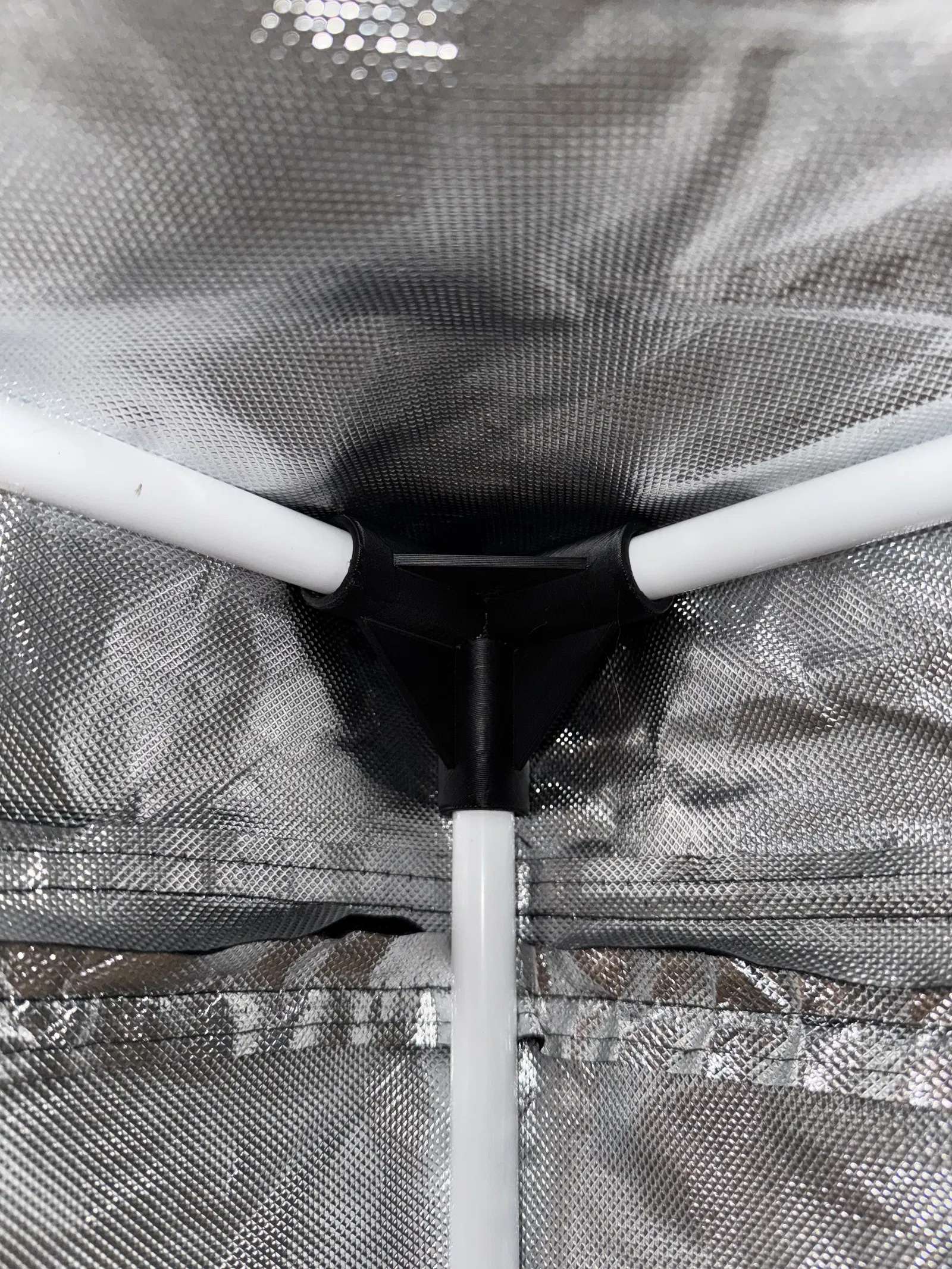 Chi tiết góc 16mm cho grow tent. Có kèm file SCAD để chỉnh tham số theo kích thước cột (post) của bạn.