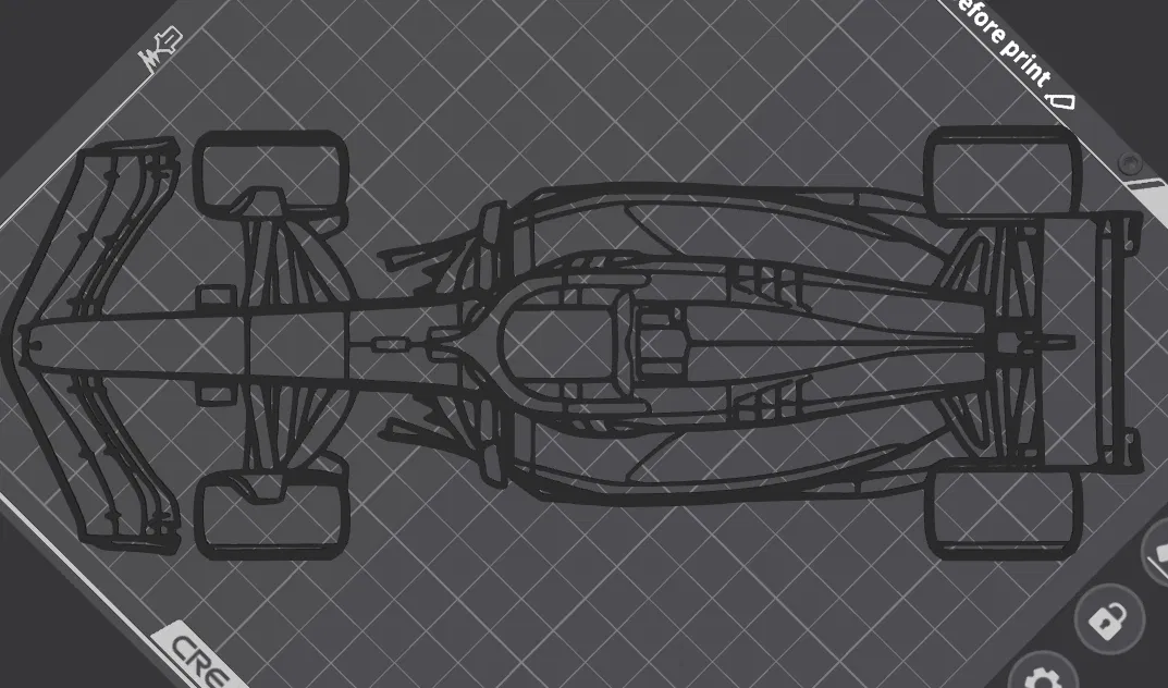 Mẫu wall art silhouette F1 Ferrari SF-24 mùa 2024, góc nhìn từ trên. Có thể tùy chỉnh kích thước theo nhu cầu in 3D và trưng bày. Mình cũng nhận gợi ý mẫu để thiết kế thêm.