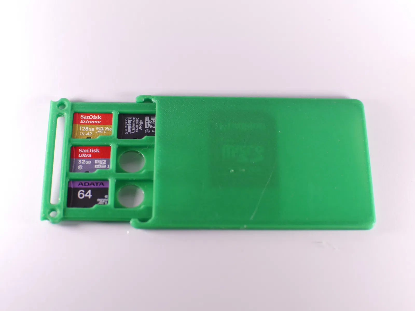 Hộp đựng SD/micro SD dạng ví siêu mỏng (2.8 mm), bỏ vừa ví hoặc túi xách. Chứa 9 micro SD + 1 SD/adapter, khóa chắc chắn. Thiết kế 2 phần, in khoảng 30 phút; hợp PETG/PLA, cần chịu nhiệt thì dùng ABS.