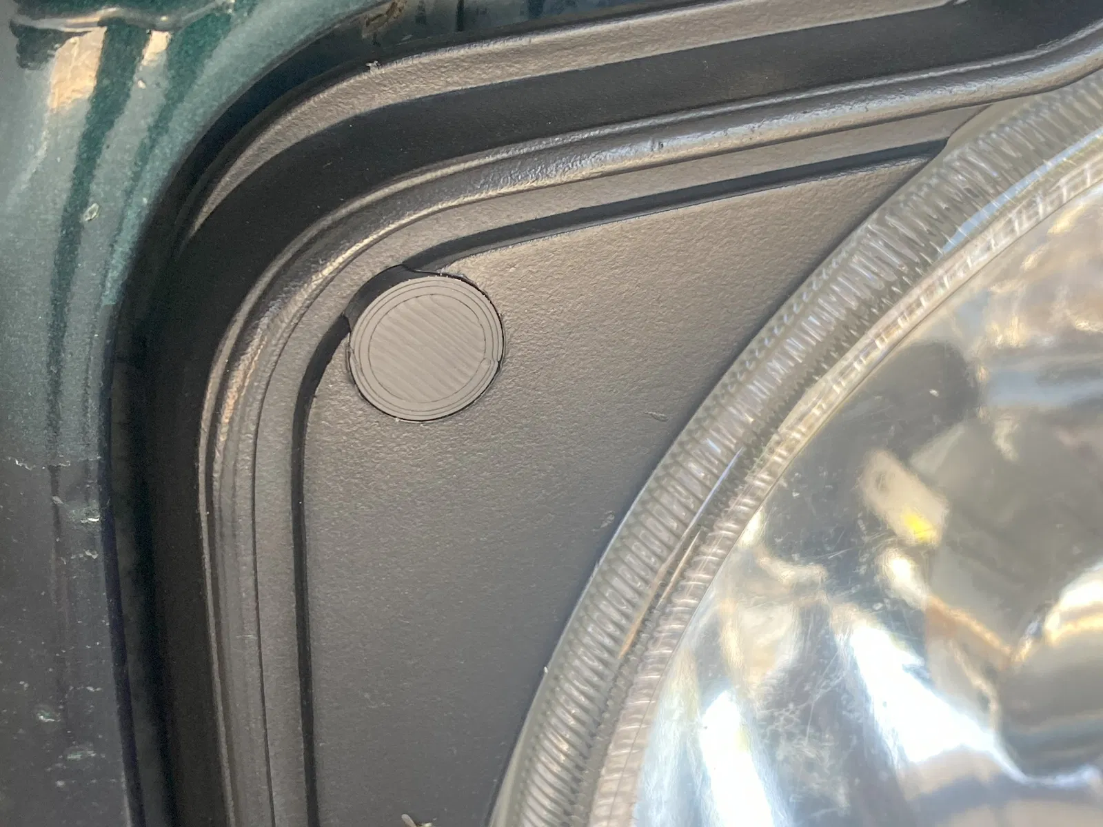 Cập nhật 2025-11-27: Có ghi nhận rằng chi tiết này, trong một số điều kiện nhất định (ngày nóng, đường xấu, v.v.), thường vẫn sẽ tuột khỏi lỗ bất kể clips có to/chặt cỡ nào. Đây chắc là lý do vì sao rất nhiều xe bị mất; có vẻ phụ tùng zin cũng gặp vấn đề tương tự. Mình đã chuyển sang dùng một ít windshield sealing urethane bôi quanh phần “barrel” của chi tiết để tăng khả năng nó ở yên vị trí; mình khuyên bạn cũng làm vậy. Bạn cũng có thể dùng “sticky tack” (keo dính mềm hay dùng để dán đồ nhẹ lên tường trong nhà). Nhớ chọn loại nào mà vẫn tháo ra được khi bạn cần, vì nó che một con ốc phải tháo ra trong trường hợp cần tháo hoặc thay cả cụm grille.