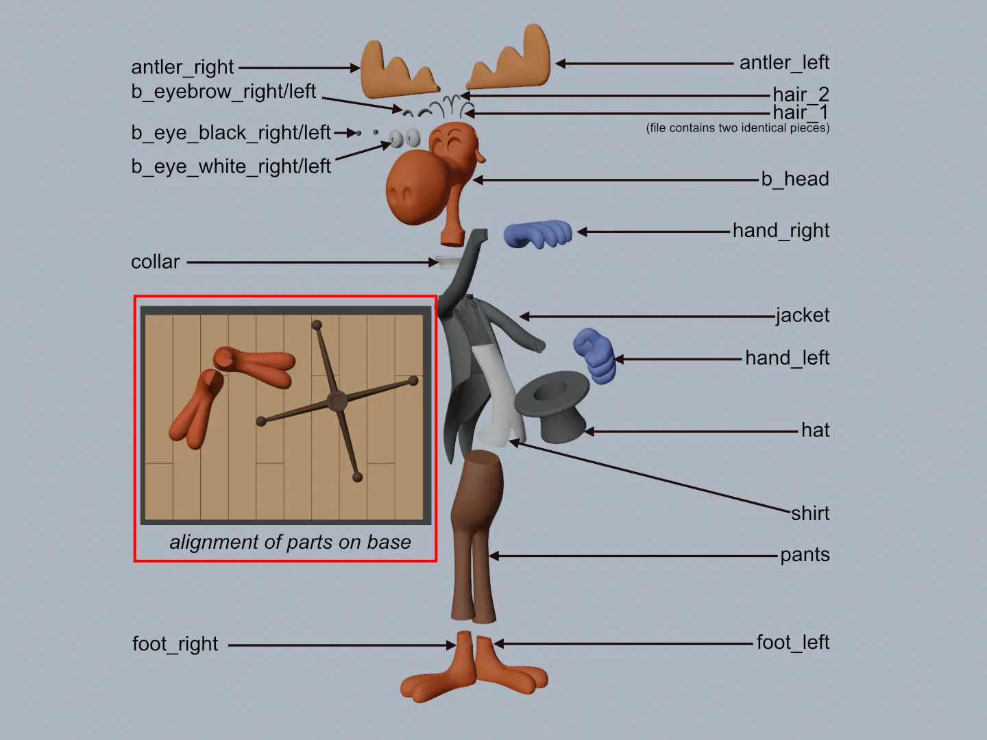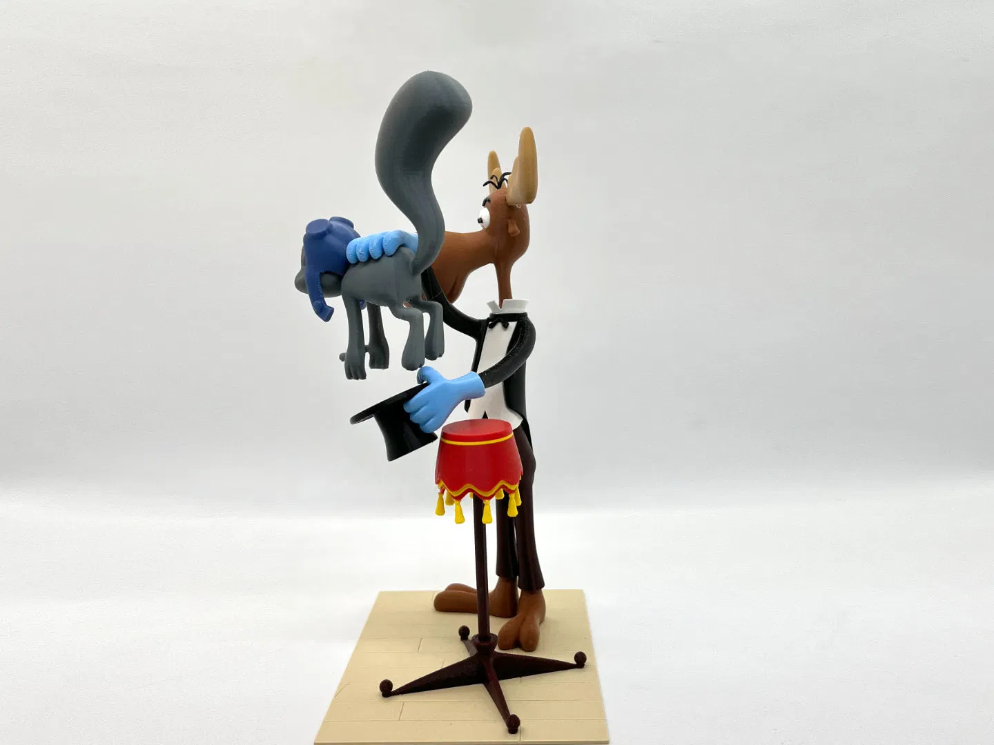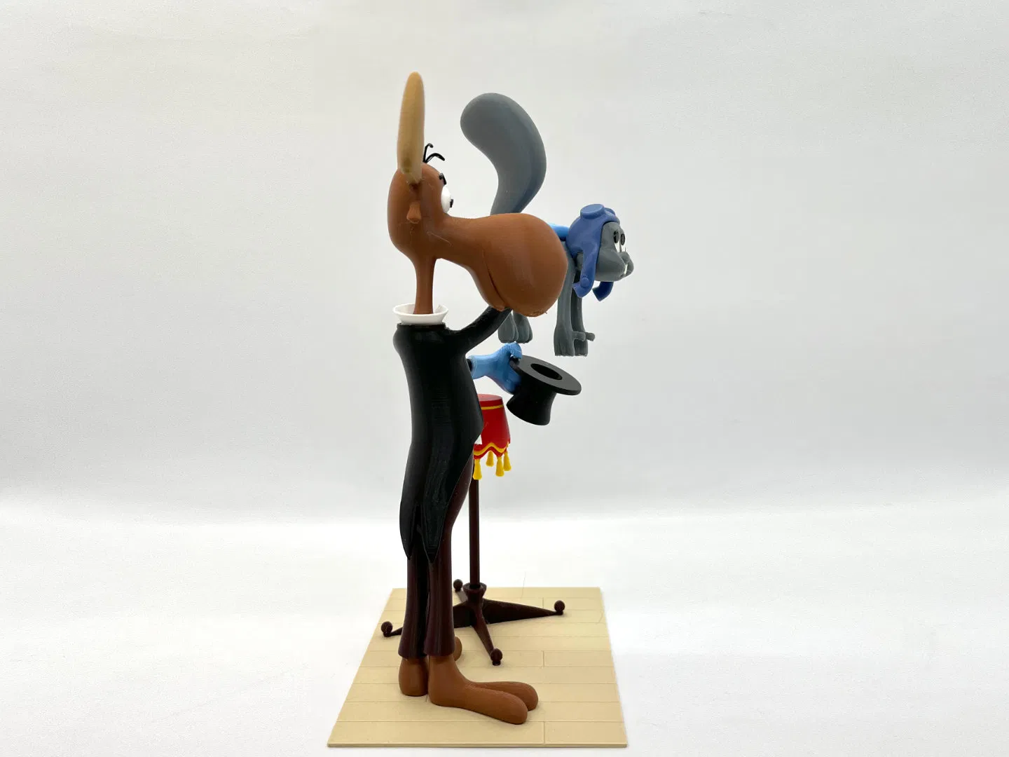 Mô hình 3D Rocky và Bullwinkle lấy cảnh từ short “Hey Rocky Watch Me Pull a Rabbit Out Of My Hat”. Cao 210mm, nhiều chi tiết nhỏ; một số part bắt buộc dùng supports/rafts. Có hướng dẫn in và lắp ráp chi tiết.