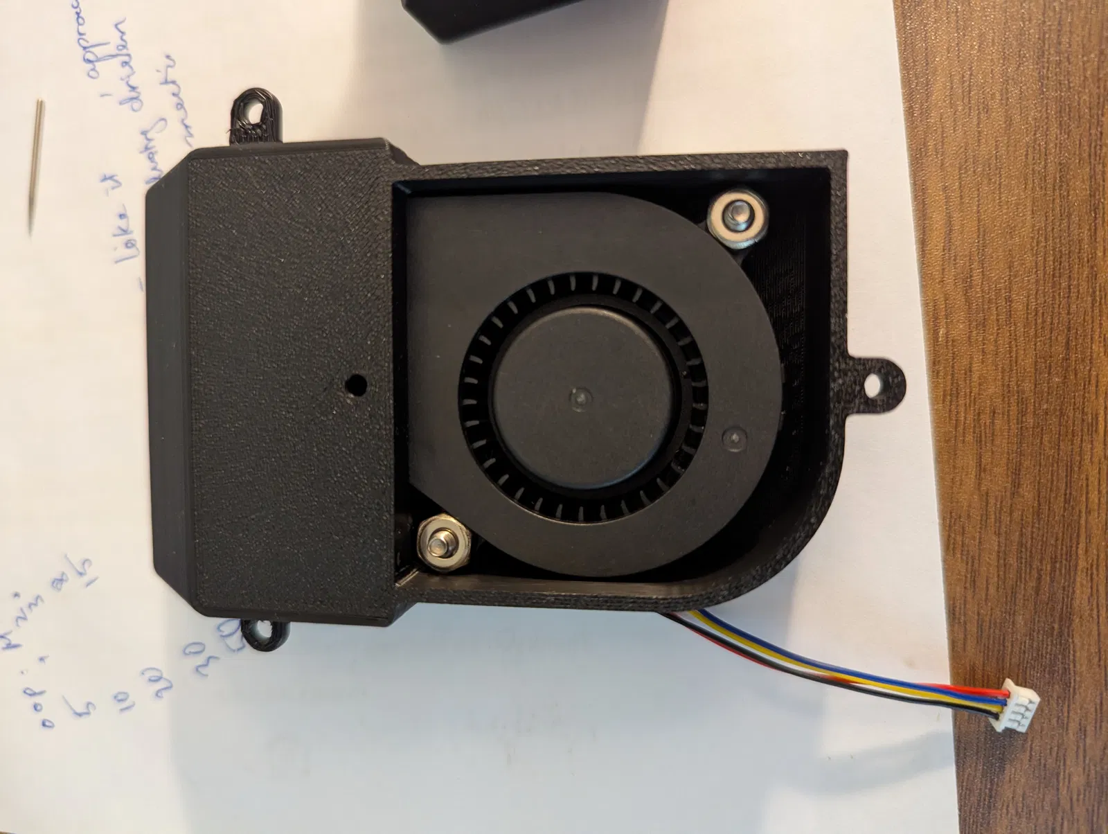 Cấp nguồn cho quạt không dùng PWM: lúc test mình chỉ dùng 2 dây + và - rồi đấu “piggyback” blower vào quạt làm mát mainboard bằng đầu chia JST 2-pin dạng chữ Y. Link tới Y splitter. Lưu ý màu dây trên splitter này bị đảo so với ký hiệu trên máy (dây đỏ vào - và dây đen vào +). Việc này không gây vấn đề vì bạn đảo cực tính hai lần, nhưng vẫn nên kiểm tra cực tính trước khi bật nguồn. Dùng cách này thì quạt sẽ chạy trong lúc in. Ngoài ra, bạn cũng có thể dùng cổng LED để cấp nguồn cho quạt. LED mặc định bật sau khi máy khởi động và bạn có thể bật/tắt nguồn bằng nút bóng đèn trong app Flash Maker hoặc Flash Forge Orca. Mình nghĩ có cách điều khiển cổng này “khôn” hơn bằng Gcode nhưng mình chưa thử.