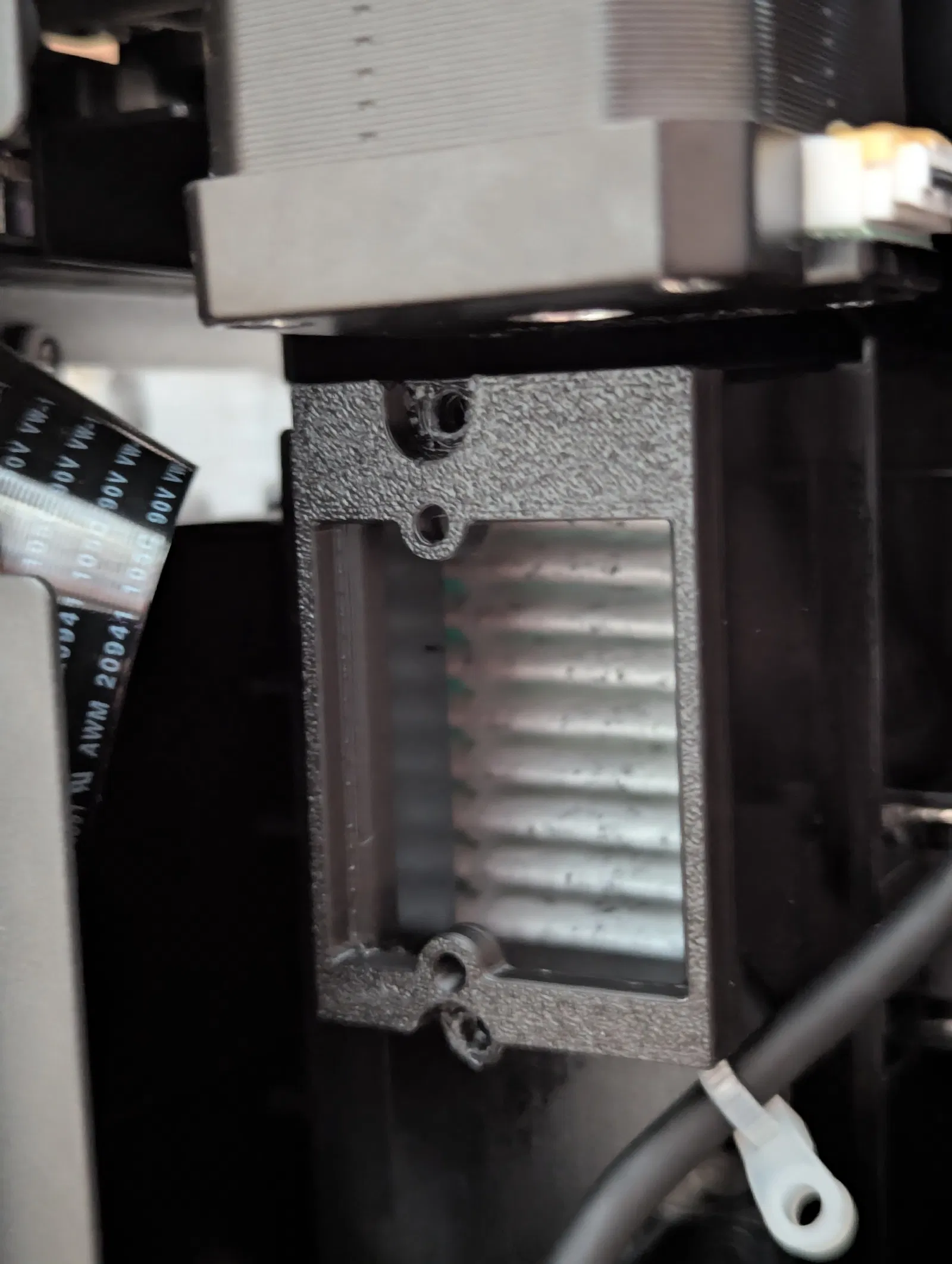 Ống dẫn lọc không khí tuần hoàn nội bộ cho AD5X. Mẫu này dùng cùng loại quạt/blower 5015 24V như trên toolhead, loại 4 dây. Nhờ vậy có thể dùng PWM và hoán đổi qua lại. Bản mod giúp giảm mùi và hạt bụi li ti có thể gây cay mắt, khó chịu ở mũi nếu bạn phải ngồi/làm việc gần máy in. Thiết kế cũng chừa khoảng hở thoải mái để lắp vừa quạt stock của mainboard và tránh vướng các linh kiện khác như dây curoa và dây cáp. Link tới blower.