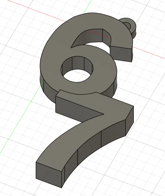 Mẫu 67 Ornament là một món đồ trang trí Giáng Sinh đơn giản theo meme/trend “Six Seven”. In nhanh khoảng 25 phút, dùng tầm 11.6g filament, kích thước 10 x 5.4 x 1.3cm.