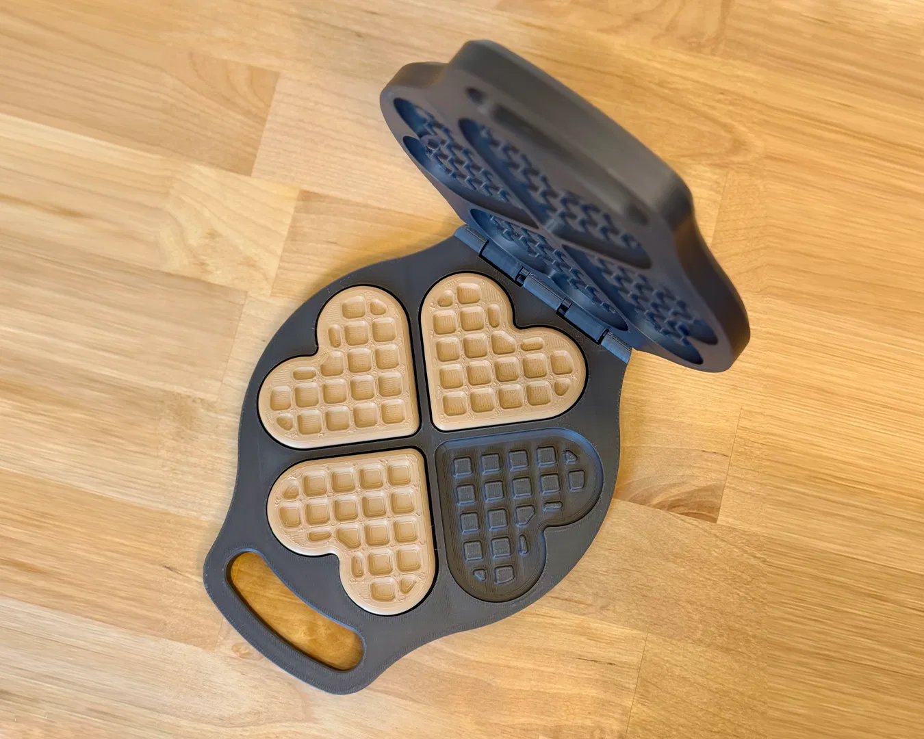 Máy nướng waffle trái tim dạng đồ chơi in 3D, không cần điện. Bộ gồm nửa trên/dưới, Hinge Pin, Hinge Clips và waffle trái tim. Dễ in không cần supports, cứng cáp, hợp play kitchen và khơi gợi sáng tạo.