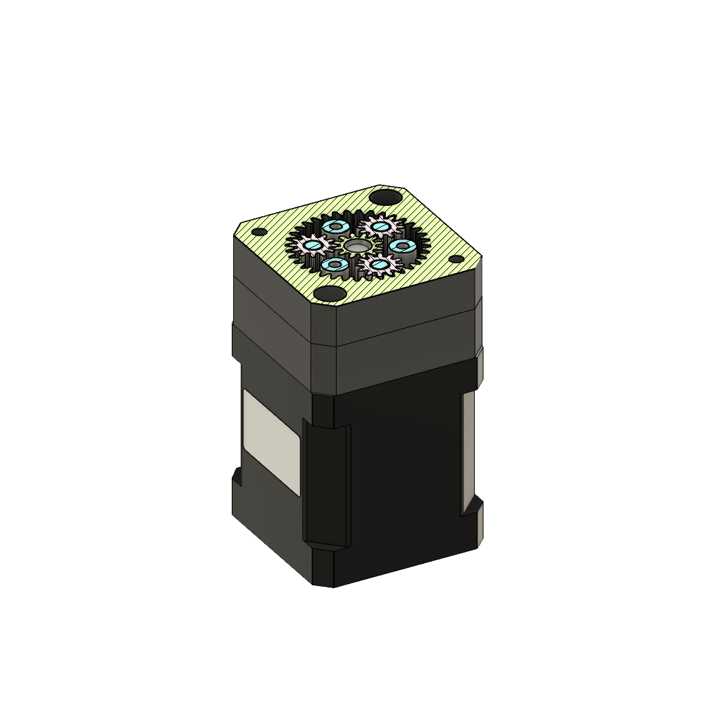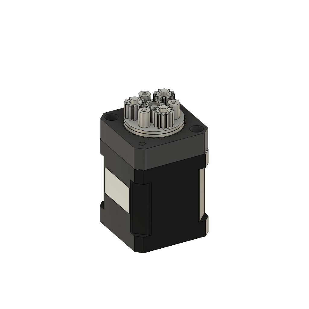 Mẫu Planetary Gearbox dạng modular, bắt trực tiếp lên stepper motor NEMA 17 bằng bulông M3. Mỗi layer cho tỉ số truyền 3:1; có thể thêm nhiều layer để tăng tỉ số truyền theo lũy thừa của 3.