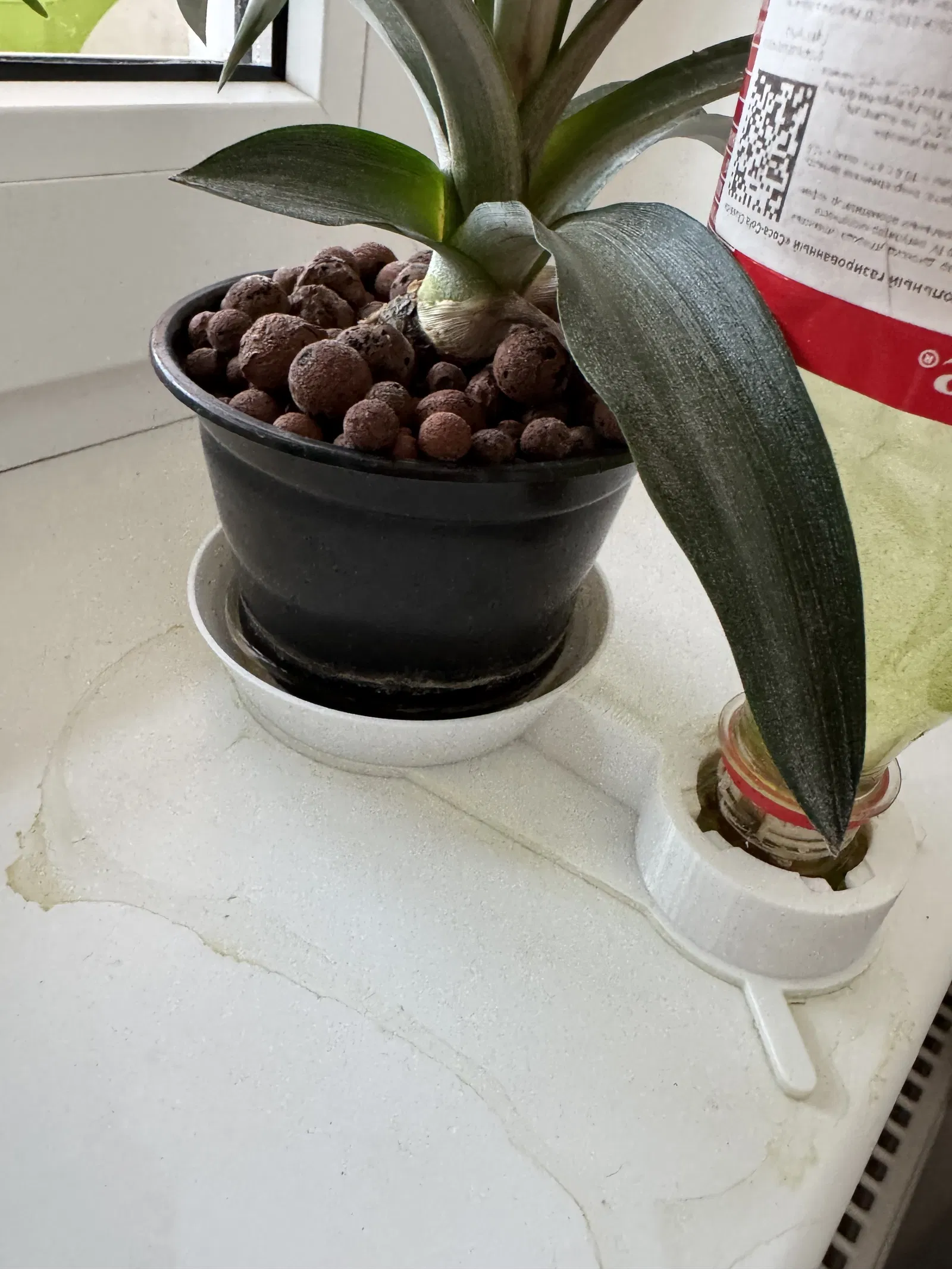 Chậu/hệ thủy canh auto tưới cho phép thay chai nước nhanh mà không cần vặn hay lật chậu. Có chỉnh mực nước. Lưu ý chỉ hợp chai nhựa cứng (chai nước khoáng). Nếu dùng LECA thì ngâm 10–24 giờ cho chìm.