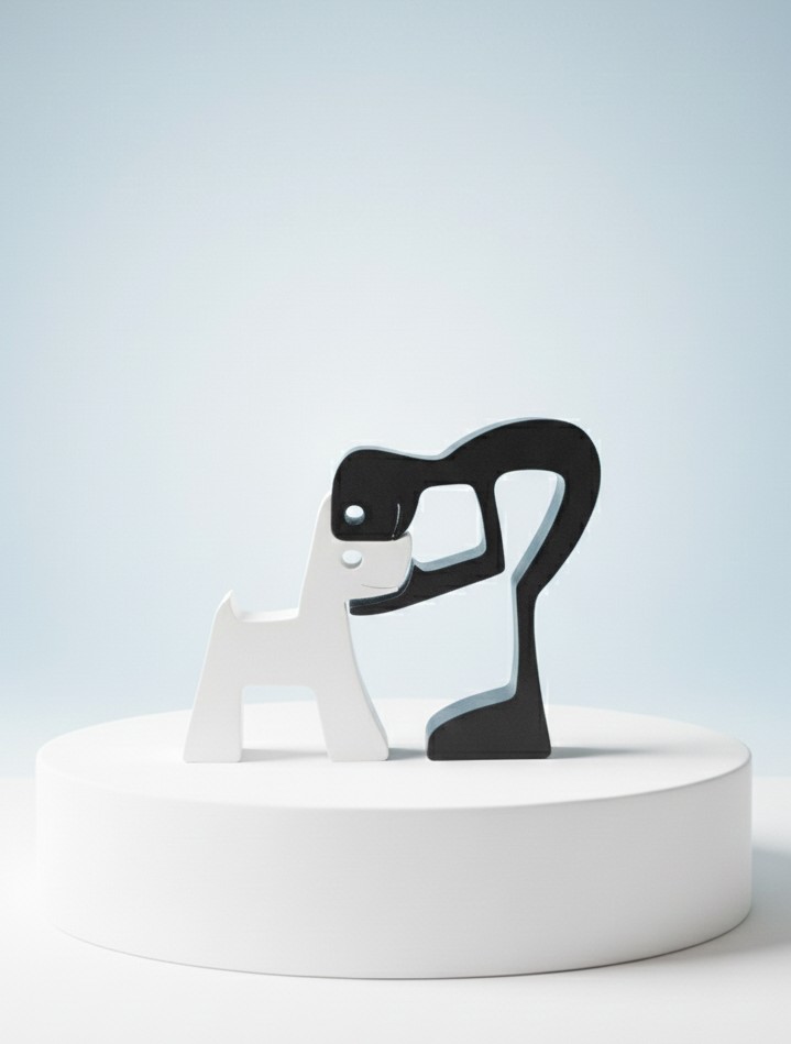Mẫu 3D đơn giản dạng trang trí: một người đàn ông đi cùng một chú chó. Thông số in khuyến nghị: nozzle 0.4, không cần support, infil 10%, vật liệu PLA.