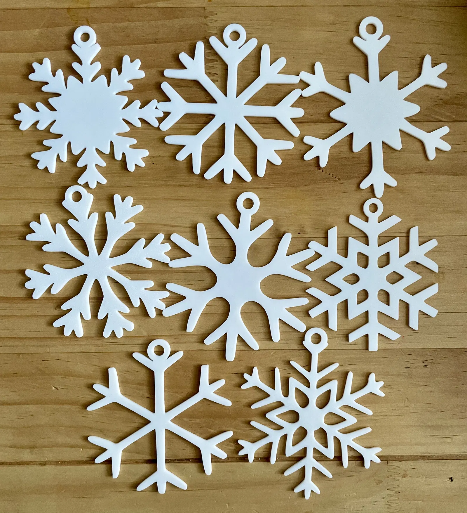 Bộ sưu tập 15 mẫu bông tuyết Giáng Sinh khác nhau, thiết kế để in 3D dễ dàng và treo lên cây thông Noel. In phẳng không cần supports, có vòng treo nhỏ, phù hợp in hàng loạt làm quà và đồ trang trí.