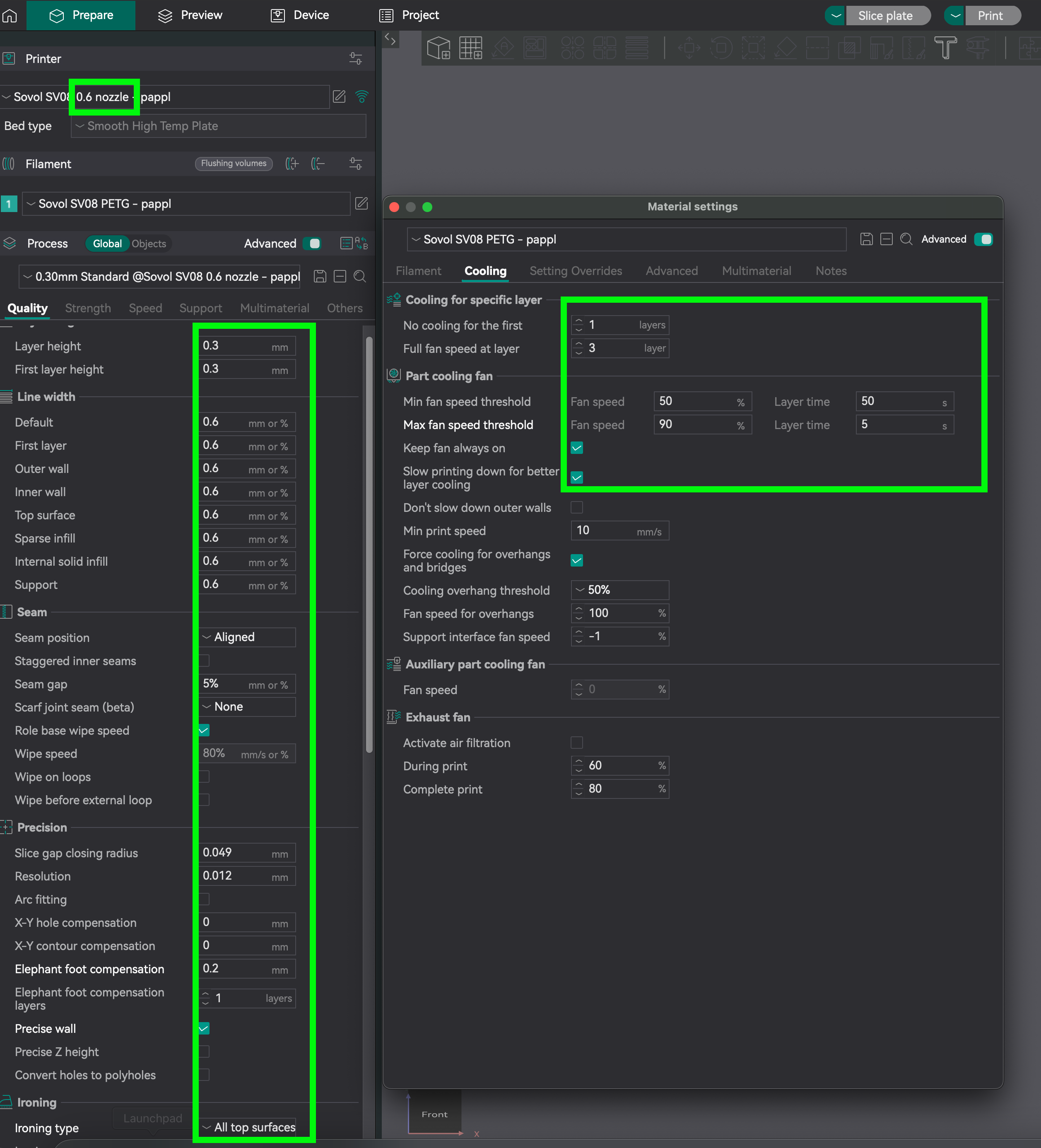 Thiết lập ORCA profile TUỲ CHỌN (tốc độ cao hơn, nozzle 0,6mm, nhiệt PETG, tinh chỉnh để bản in sạch hơn,…):