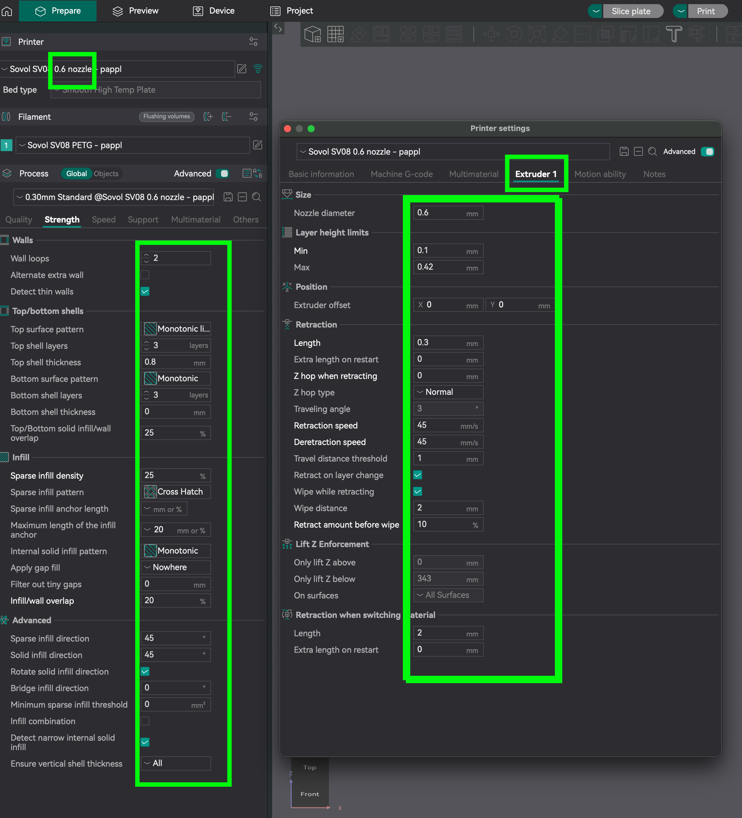 Bộ Macro.cfg và printer.cfg tối ưu cho Sovol SV08, kèm Orca Slicer G-Code/Settings để in nhanh hơn và sạch hơn. Có lưu ý cấu hình nozzle 0.4/0.6mm, PETG và cảnh báo tự chịu rủi ro.