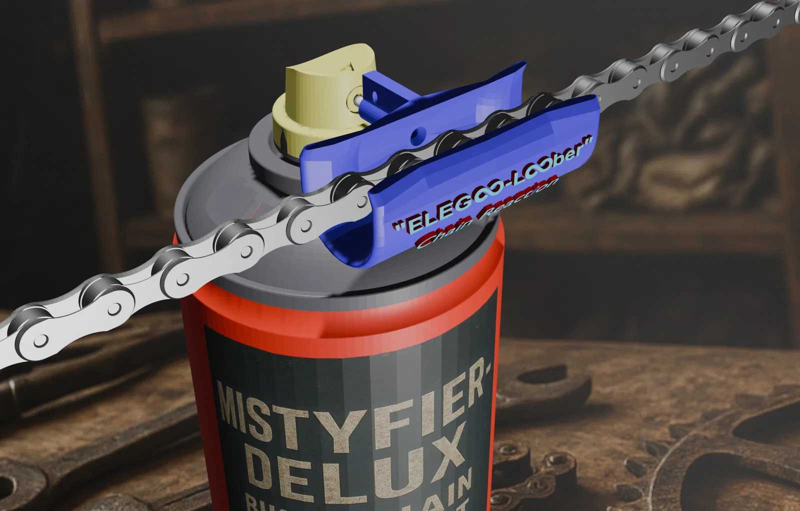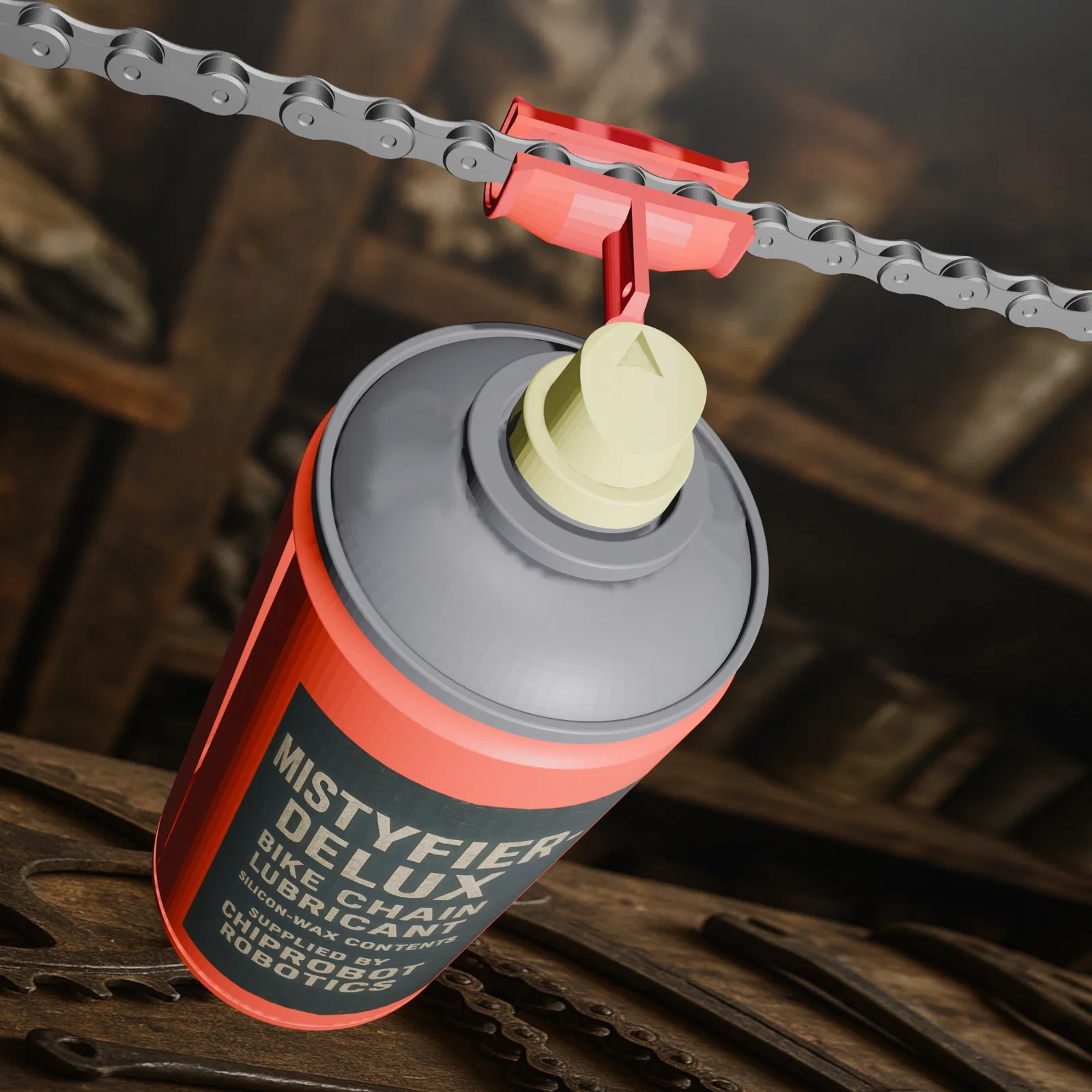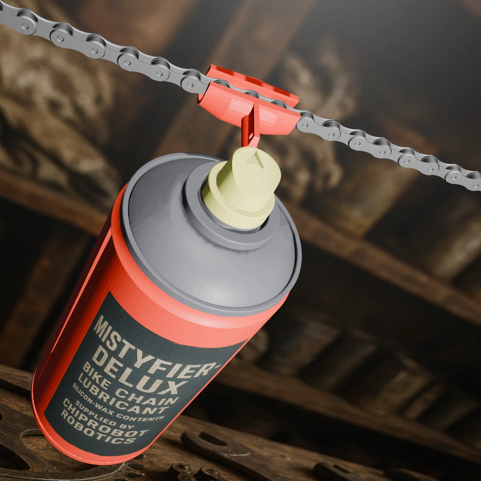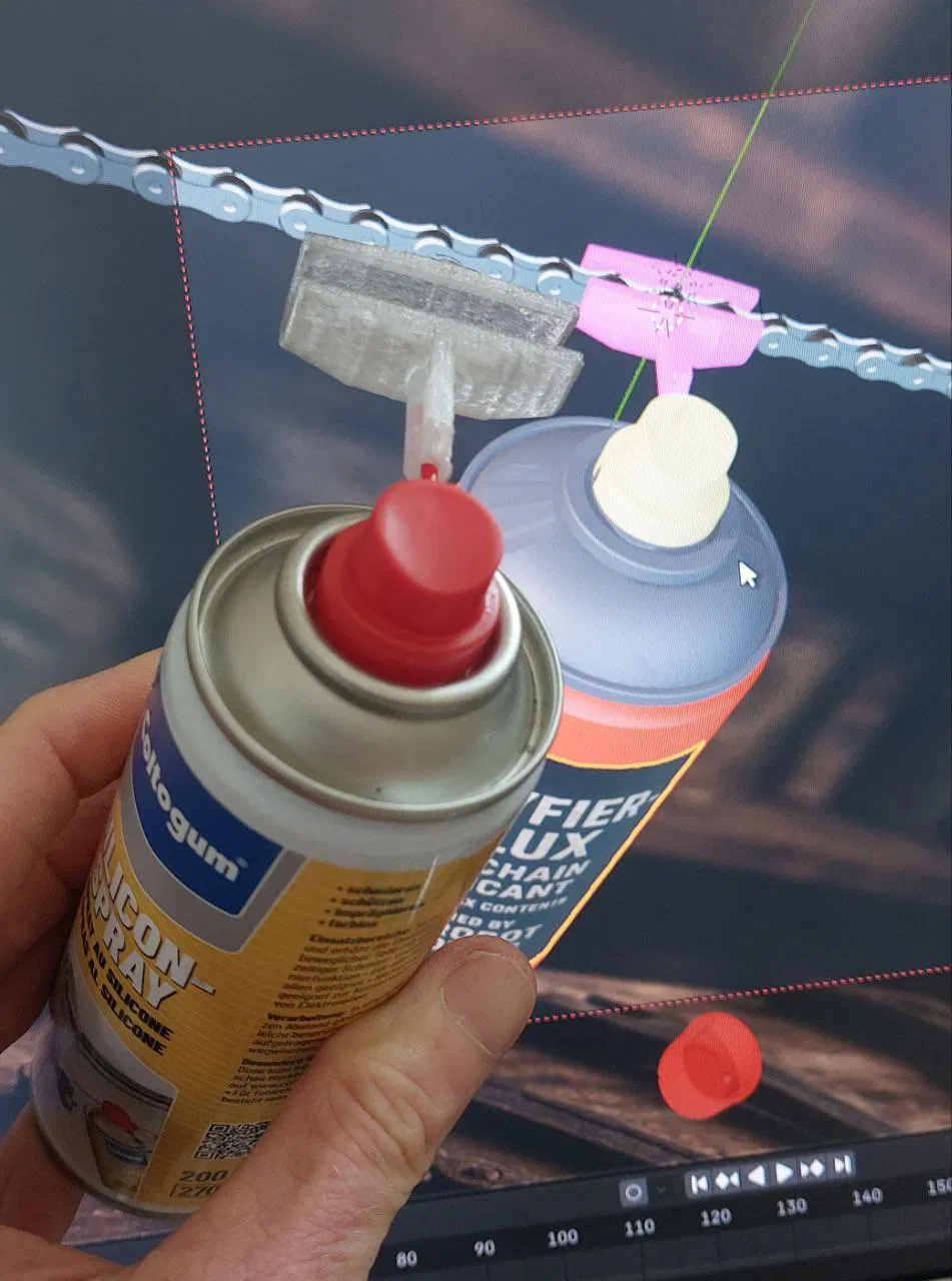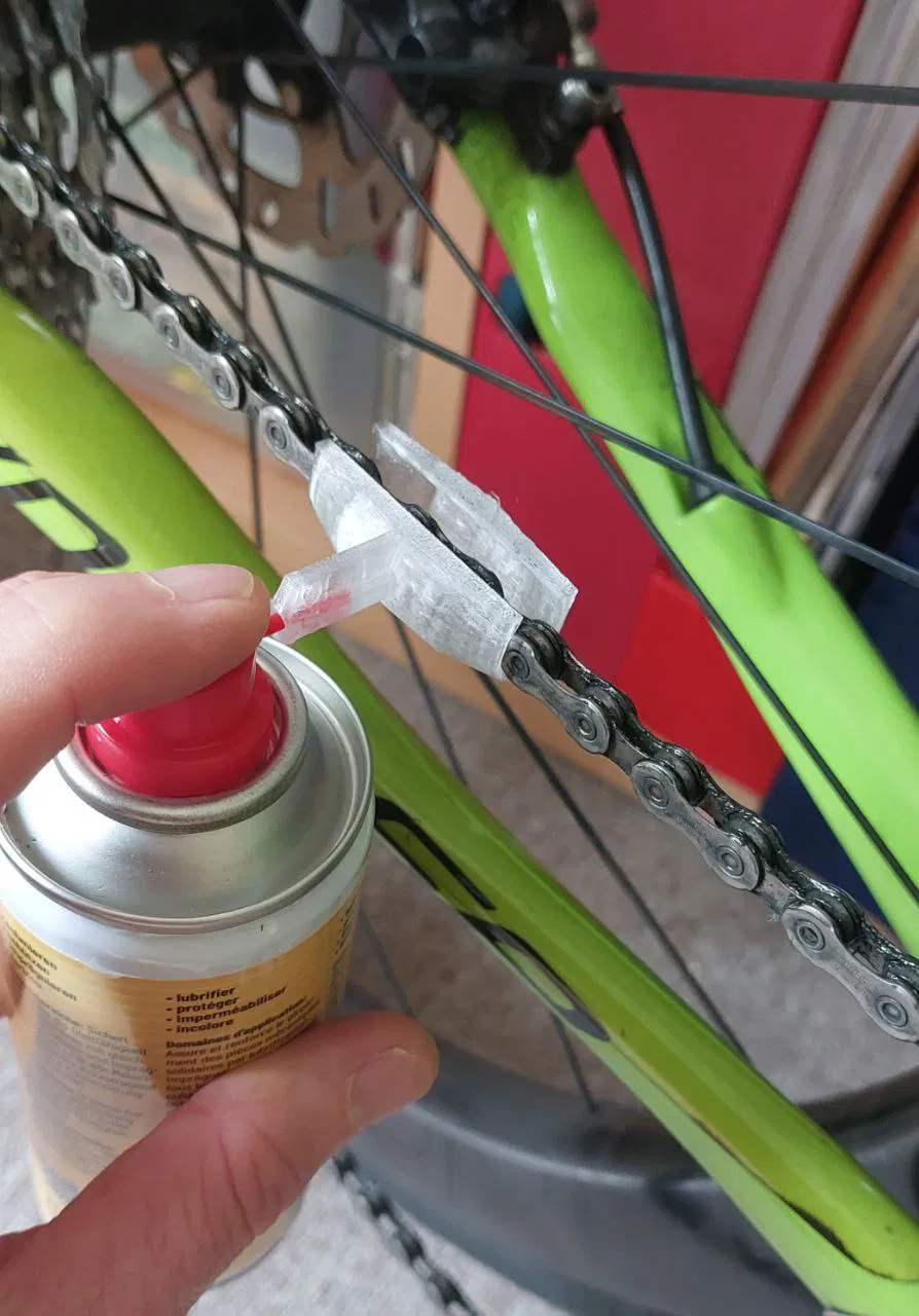 Phụ kiện gắn bình xịt giúp phun Oil/Wax hoặc brake-fluid đúng vào sên, hạn chế overspray lên sườn, vỏ và đĩa thắng. Bản V3.0 lướt êm hơn, in nhanh ít filament; có thêm tùy chọn gap 20mm và cập nhật gap 15mm.