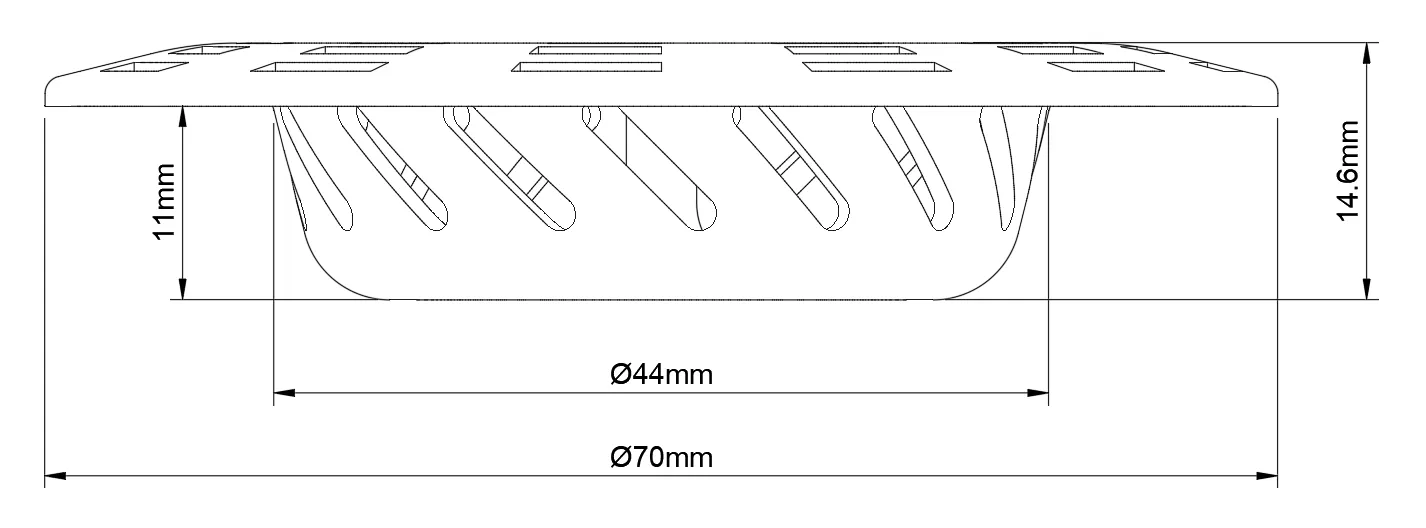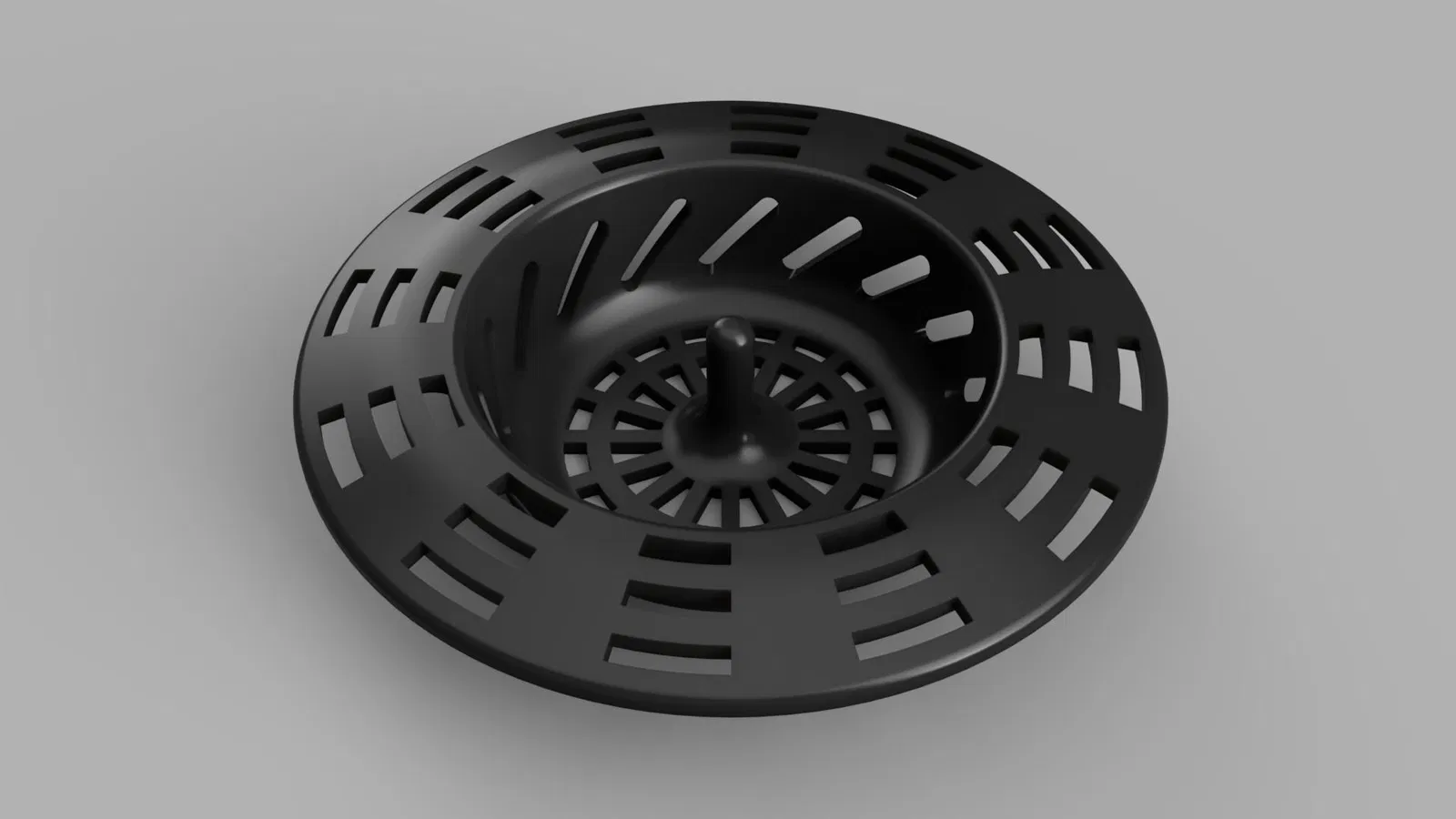Lưới lọc thoát nước bồn rửa cho ống thoát 70mm, giúp nước thoát tốt kể cả khi bị nghẹt một phần. Khuyến nghị in bằng filament chịu nhiệt; PETG/ASA dễ vênh, PC ổn hơn. Cần in kèm supports.